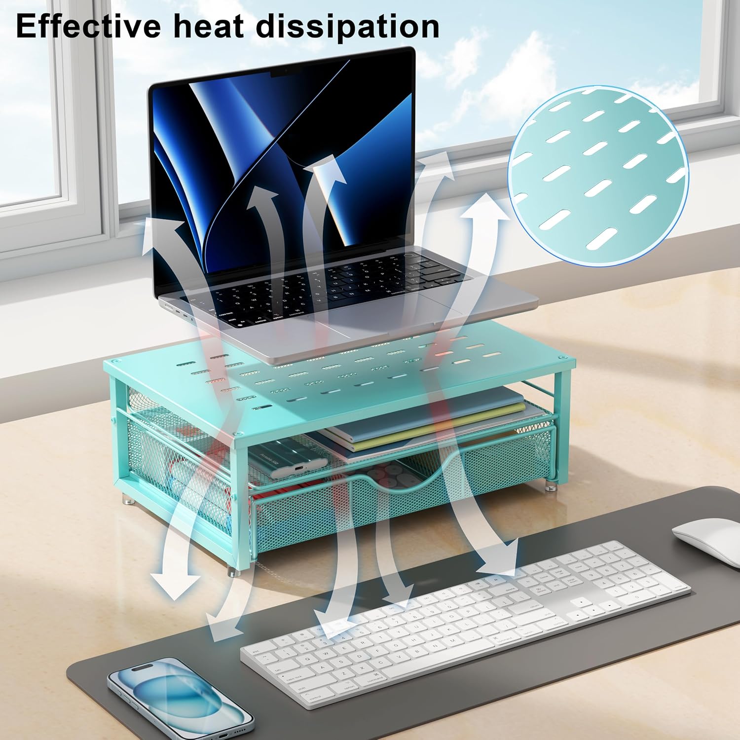 - 【Wide compatibility】: The office desk organizer is designed with ventilated panels to prevent equipment from overheating. Suitable for printer, computer, notebook.