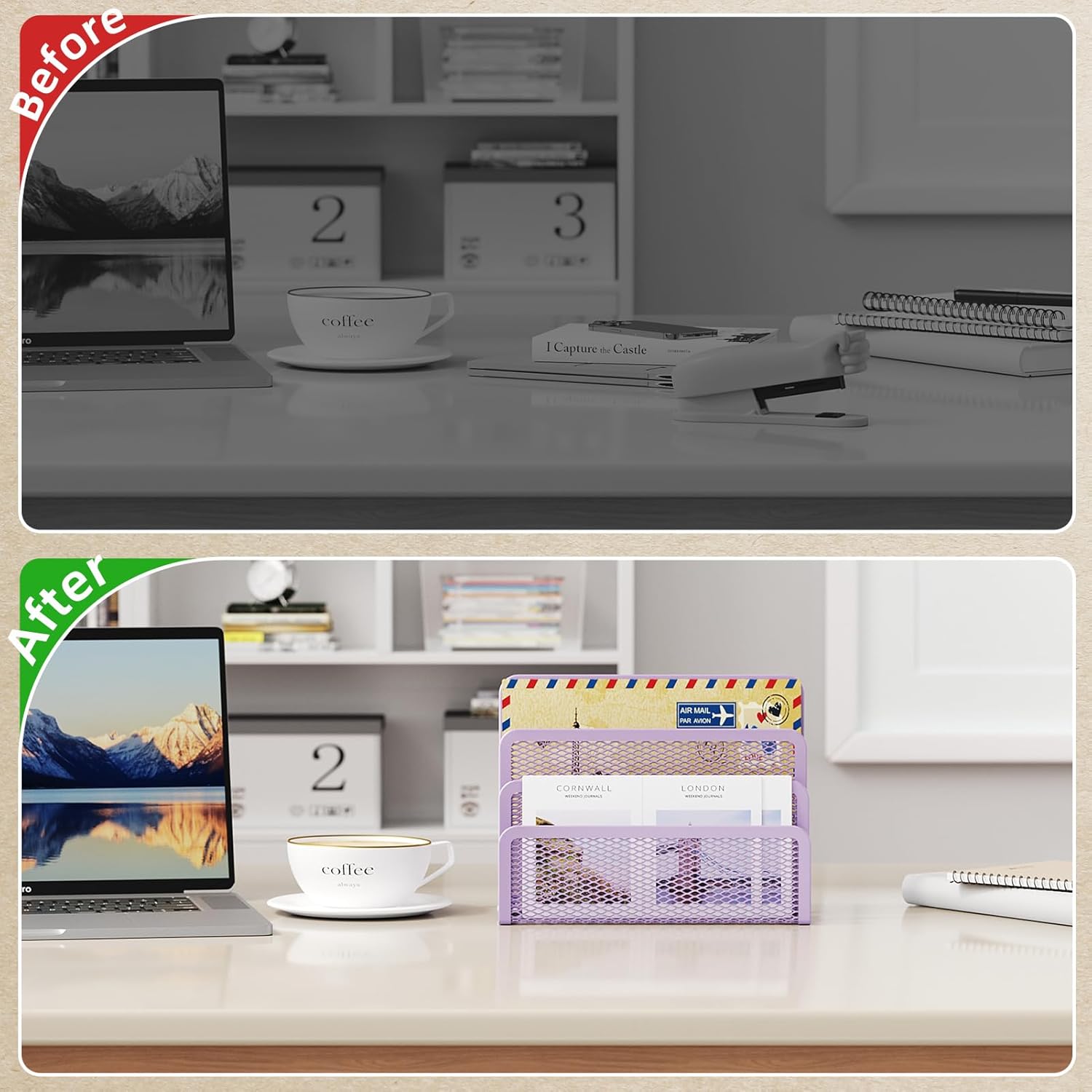 - 【Space Saving】Marbrasse amazing mail sorter organizer features three compartments, specially designed to consolidate your desktop items. This fantastic mail holder will tame your desk clutter, save valuable space, and keep your workspace clean and orderly