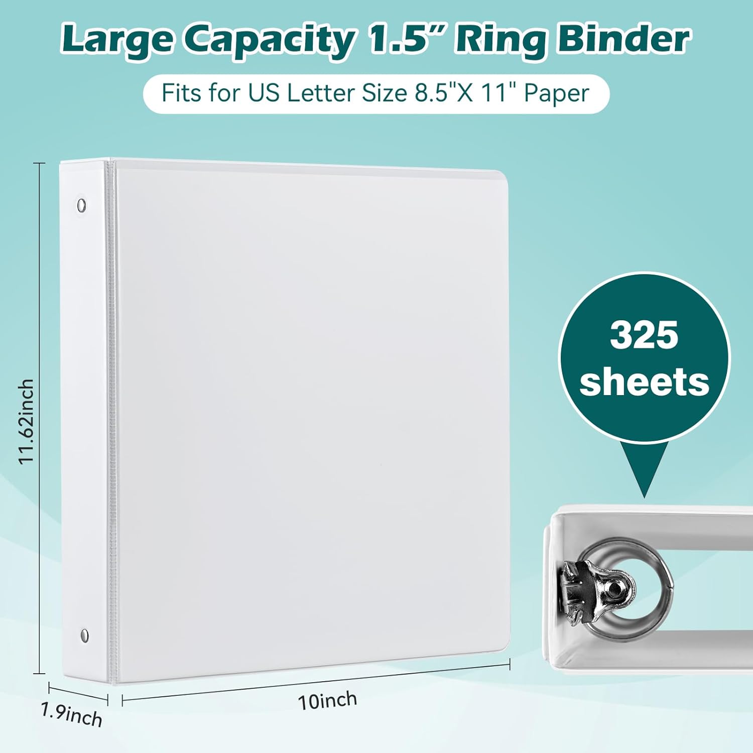 - 6 Pack 1.5" White Binder: Come with 6 Bulk 1.5 inch binders with round ring, these binders are a great choice and money saving when planning for budgets, presentations, conferences and more.