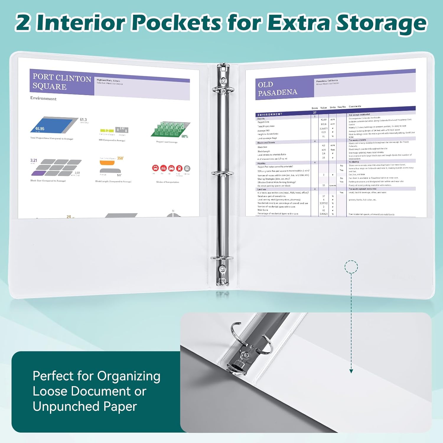 - Large Storage Capacity: The 1.5 round ring binder holds up to 325 sheets of 8-1/2-by-11-inch paper or 3-hole folders.The two pockets inside the three ring binder work well for storing unpunched documents,handouts, small papers and other loose.