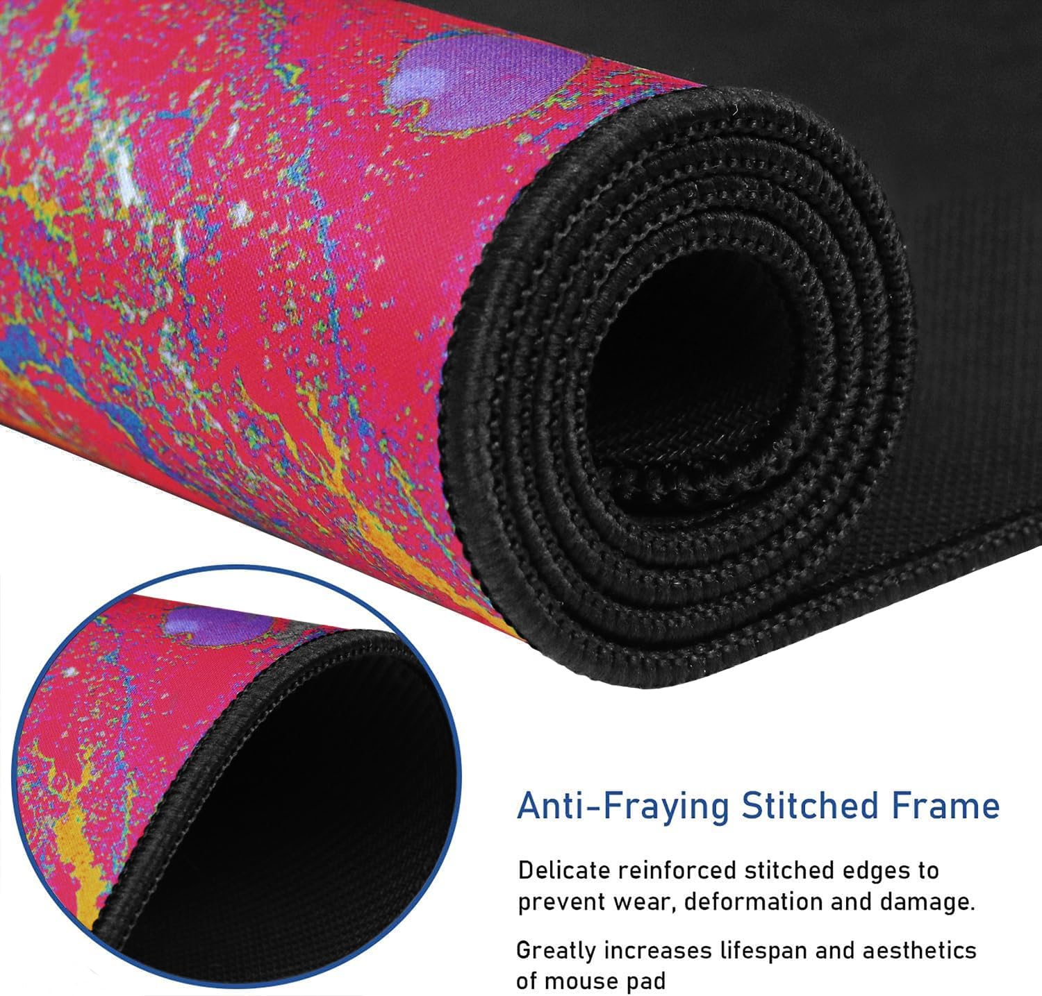 - 【Get the Best Control】Made of high elasticity natural rubber, this mouse mat is non-toxic and has no hazardous substances, safe for use. Anti-slip base can firmly grip your desktop and nylon stitched edges make the pad much more durable and longer lasting. Easily roll up the mouse pad without getting wrinkless or creases.