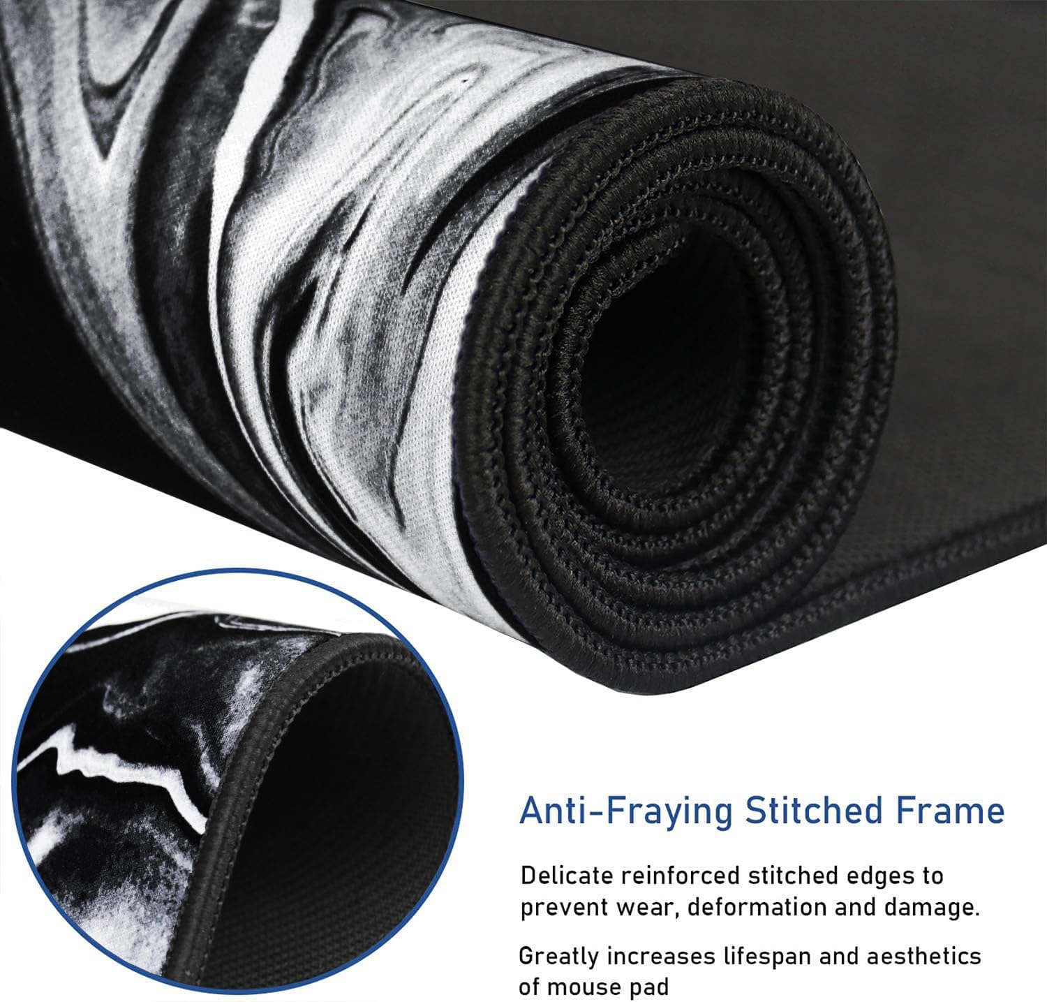 Large Extended Gaming Mouse Pad with Stitched Edges, Durable Non-Slip Natural Rubber Base, Waterproof Computer Keyboard Pad Mat for Esports Pros/Gamer/Desktop/Office/Home - Black White