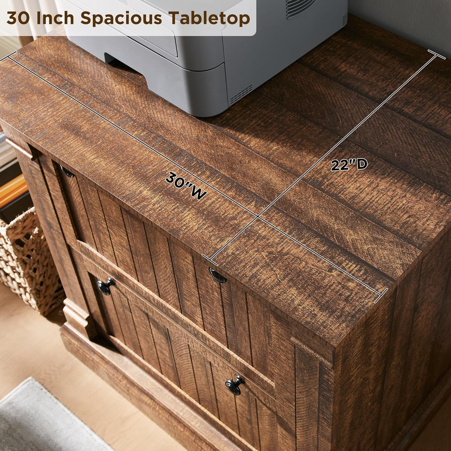 OKD Farmhouse File Cabinet with 2 Drawers, 30" Lateral Filing Cabinet with Hanging File Folders, Interlocking Drawers, Wood Rustic Storage Cabinet for Home Office,Brown