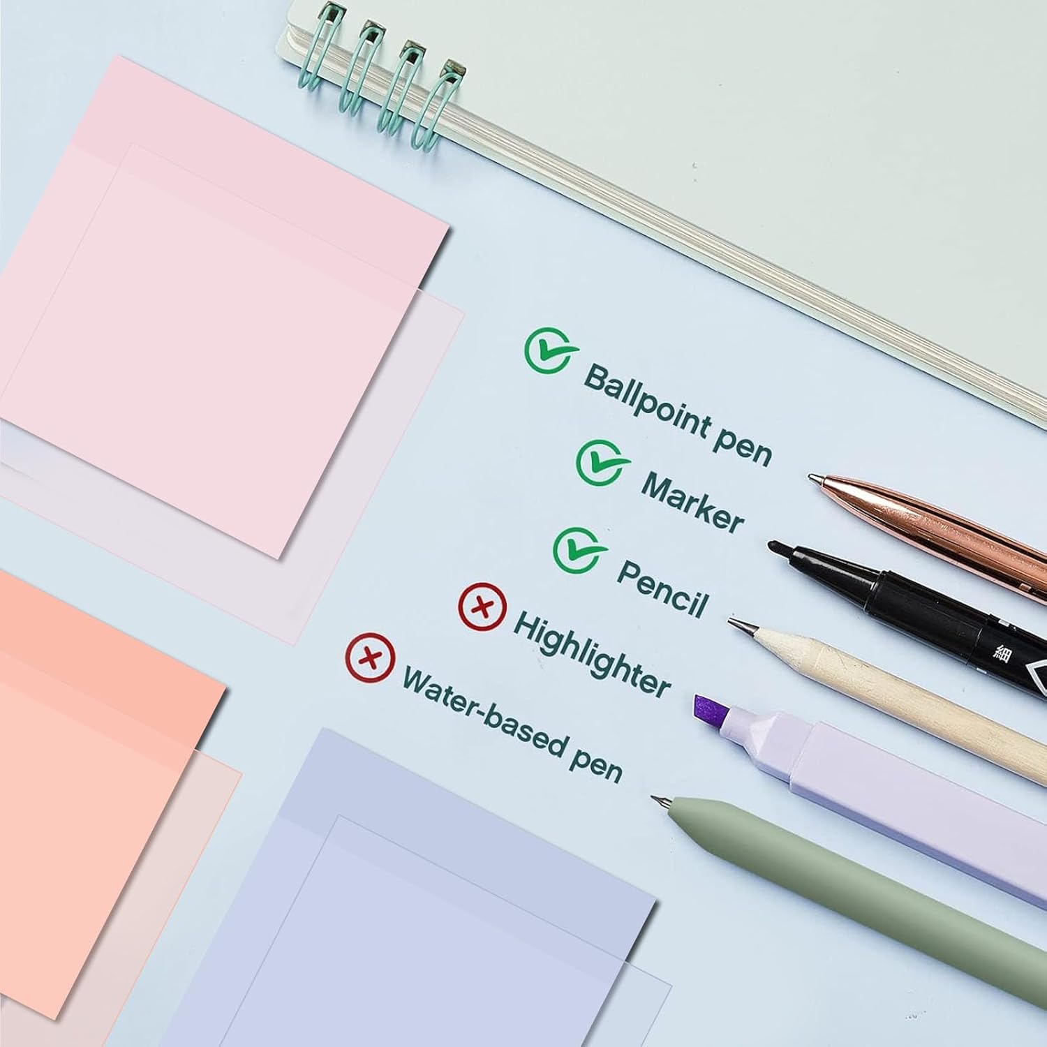 - Smooth Writing Experience: made of quality plastic body, aesthetic pens and highlighters ensures the long period use, not easy to deform or break, comfortable to hold, black ink is quick to dry, providing a fluent writing experience; The black marker is not easy to be erased when writing on the transparent sticky note, which is convenient for you to use