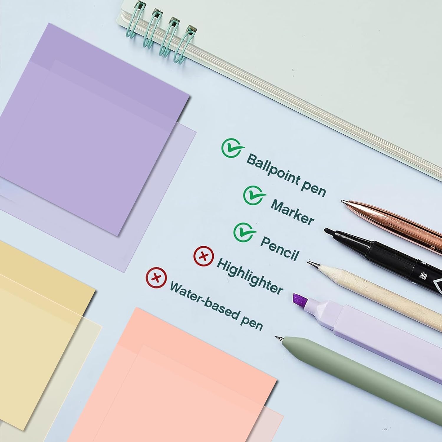- PET Material: pastel colored transparent sticky notes and index tabs adopt quality PET material, waterproof, durable, colorfast, hard to tear, colorful and transparent design makes a translucent look, not hiding your notes, practical and decorative. The annotation sticky notes will not leave any residue on the page, you can be written on the information and paste it wherever you want
