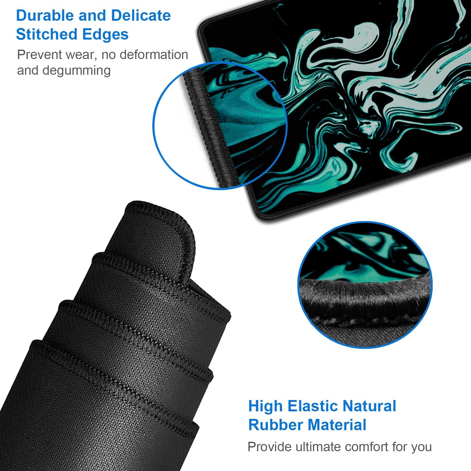 Large Mouse Pad, 31.5x15.7 inch Large Extended Computer Keyboard Mouse Mat, Water Resist Non-Slip Mousepad Rubber Base Long XXL Desk Mouse Pad for Gaming, Office & Home, Marble Cyan