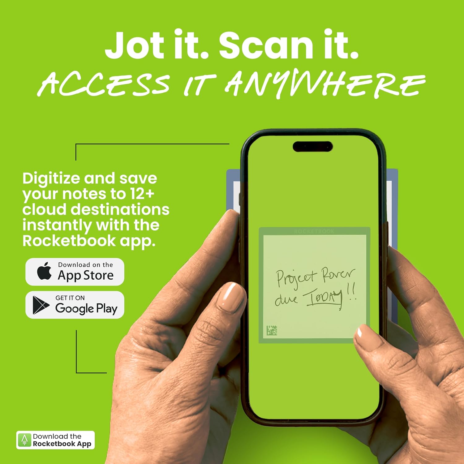 - Write, Scan, Erase, and Re-Stick: Write notes with a FriXion pen, scan multiple notes at once with the Rocketbook app to save digitally, wipe clean with a towel and water, then wash the reusable adhesive to re-stick again and again as needed.