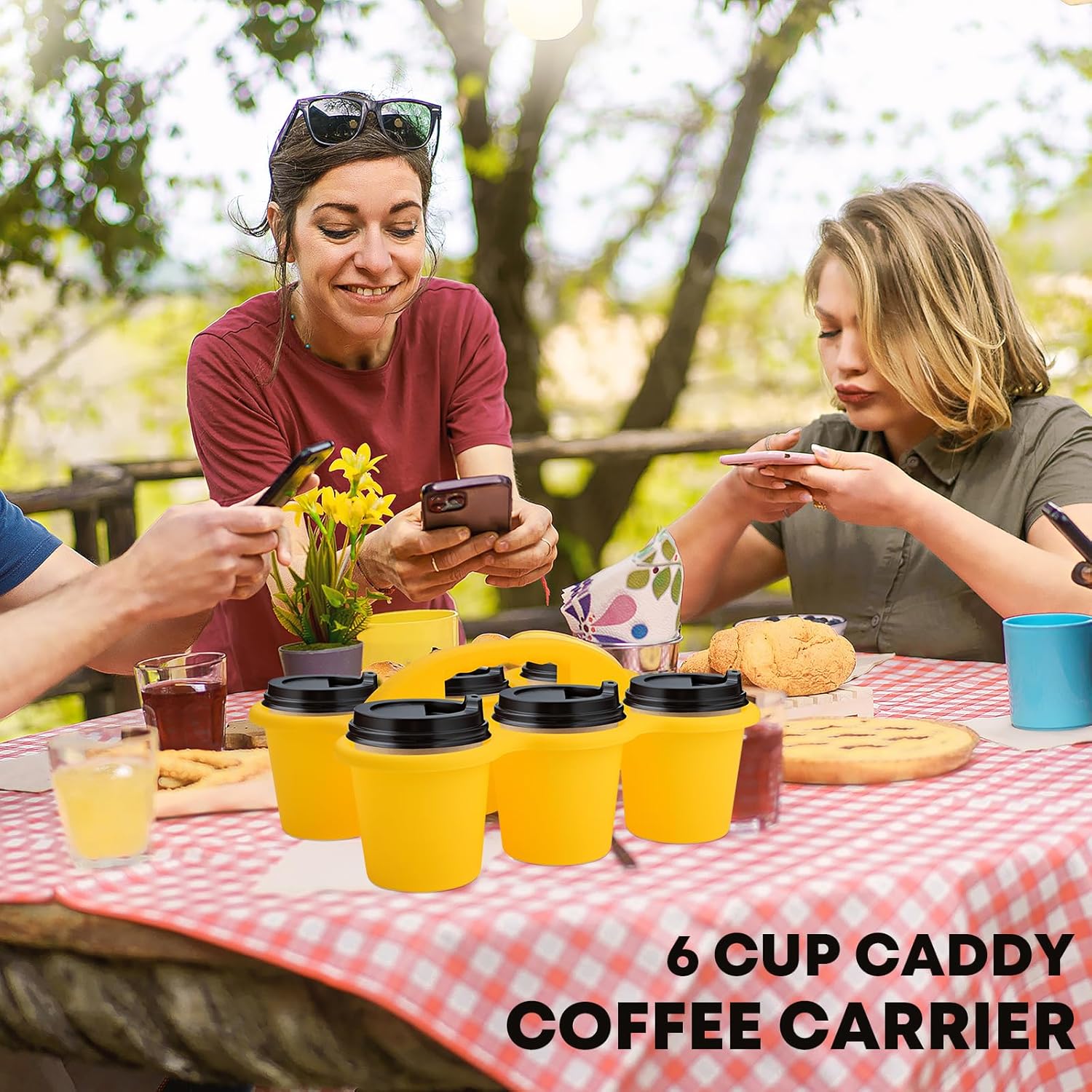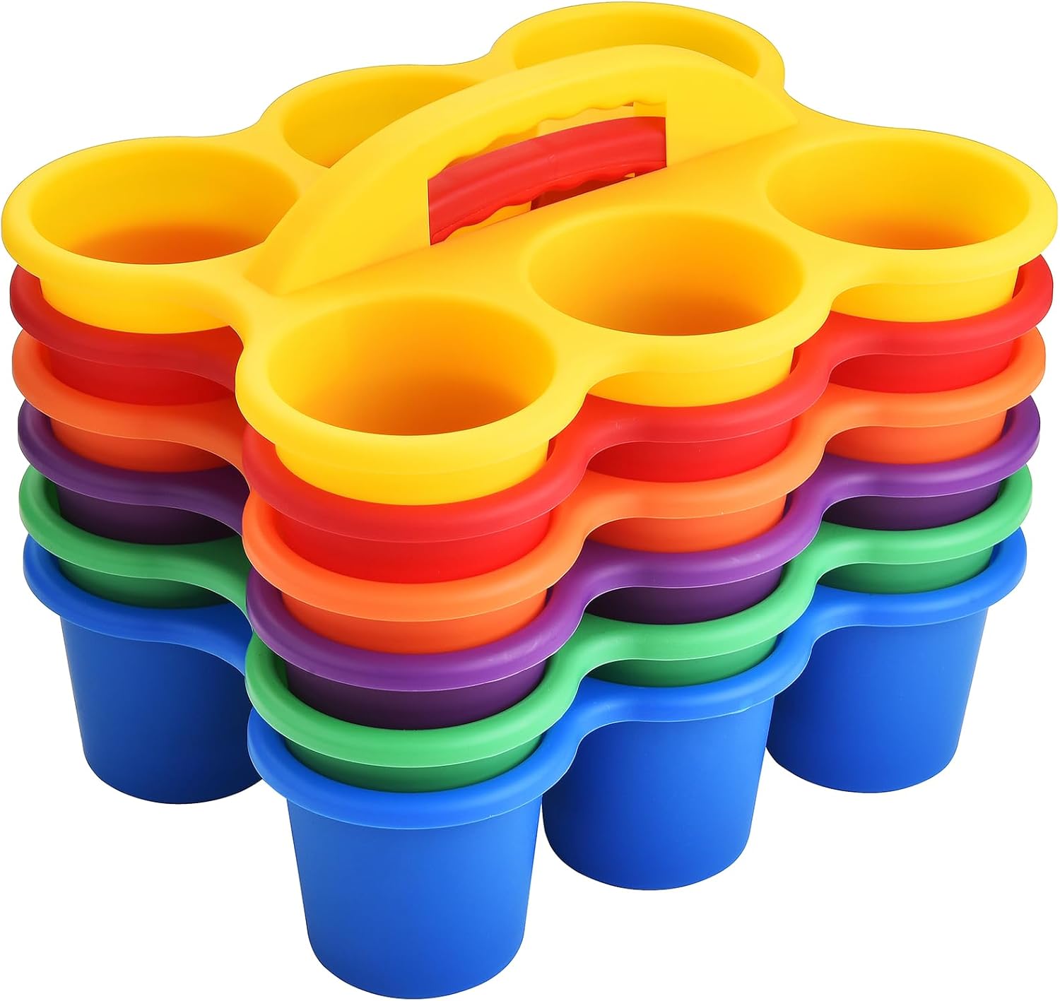 ALINK 6 Pack Classroom Caddy Storage Basket with Handle, Plastic Drink Cup Caddy Holder, 6 Compartments for Kids, Table, Office, Arts, Crafts, Crayon, Marker, Pencil, School Supplies - Assorted Colors