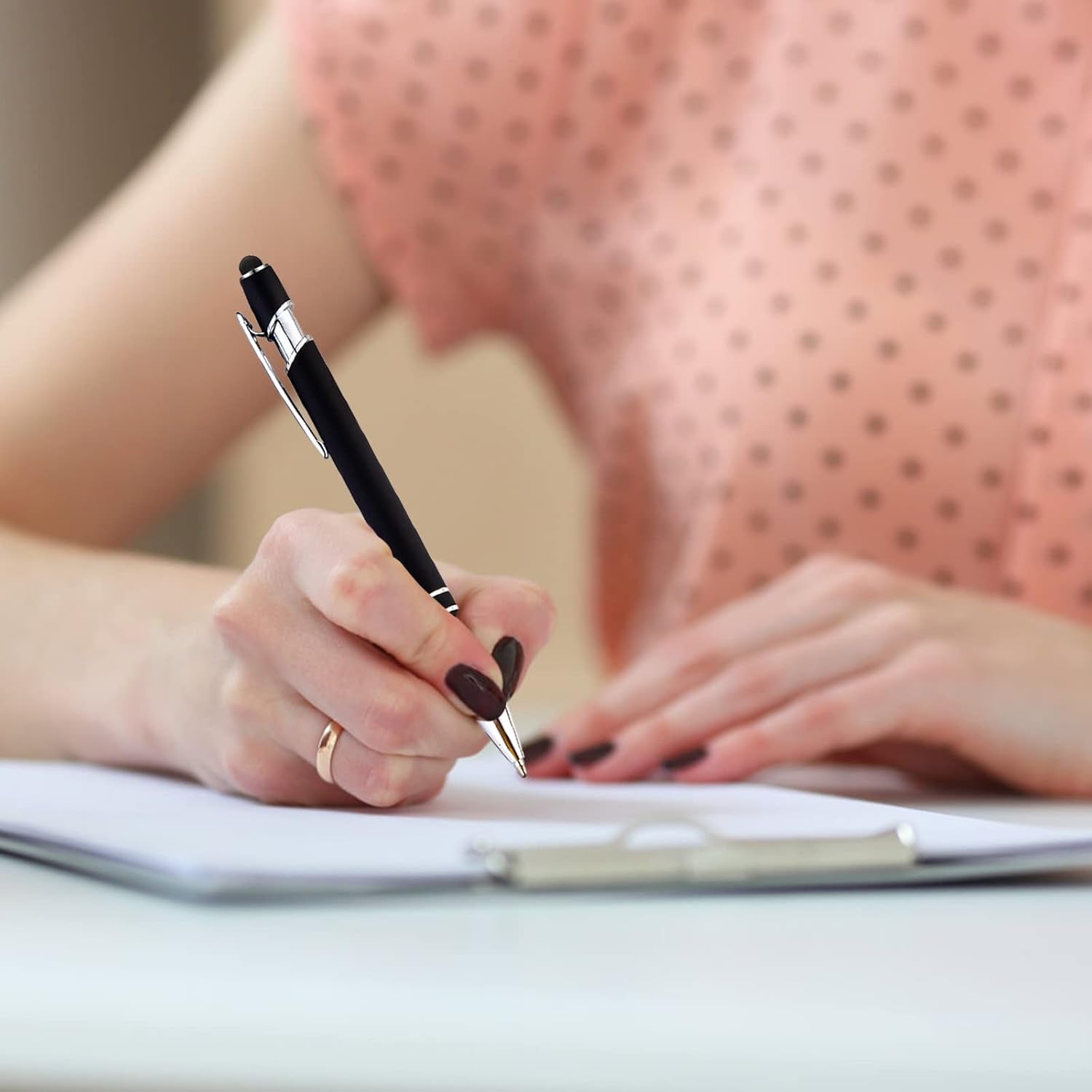- ❤【Versatile Design】The 2-in-1 design of this black Stylus Pen for Touch Screens offers more functionality. Take notes on paper or your phone/tablet screen with ease. Plus, it doesn't require charging, saving you time and hassle. The double ring grip design increases friction and prevents slipping.