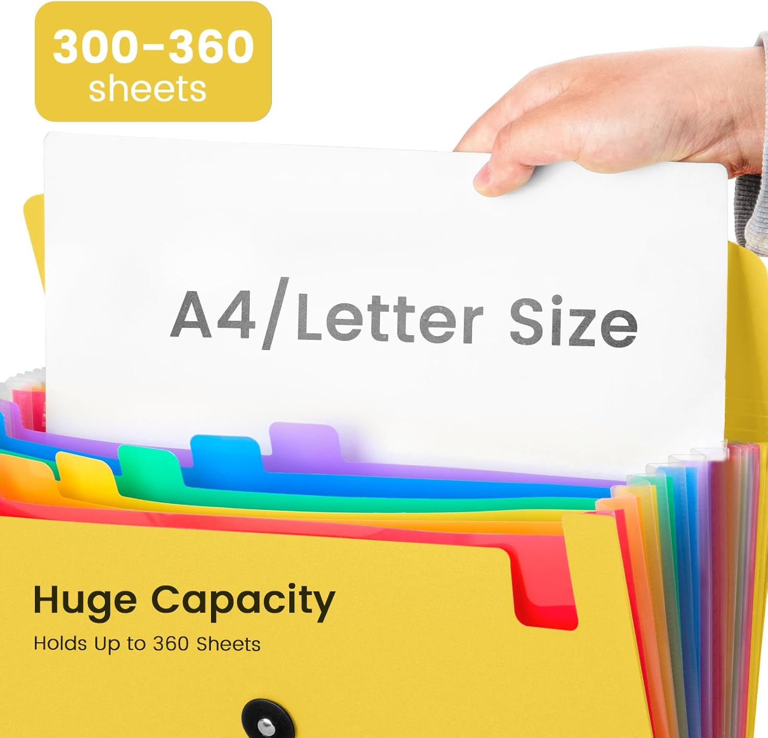 - Extra Capacity: 13 pocket accordion folder size is 13 x 9.6 inches, holds up to 300~360 sheets of paper. Comes with 12 writable labels to help find what you want easily