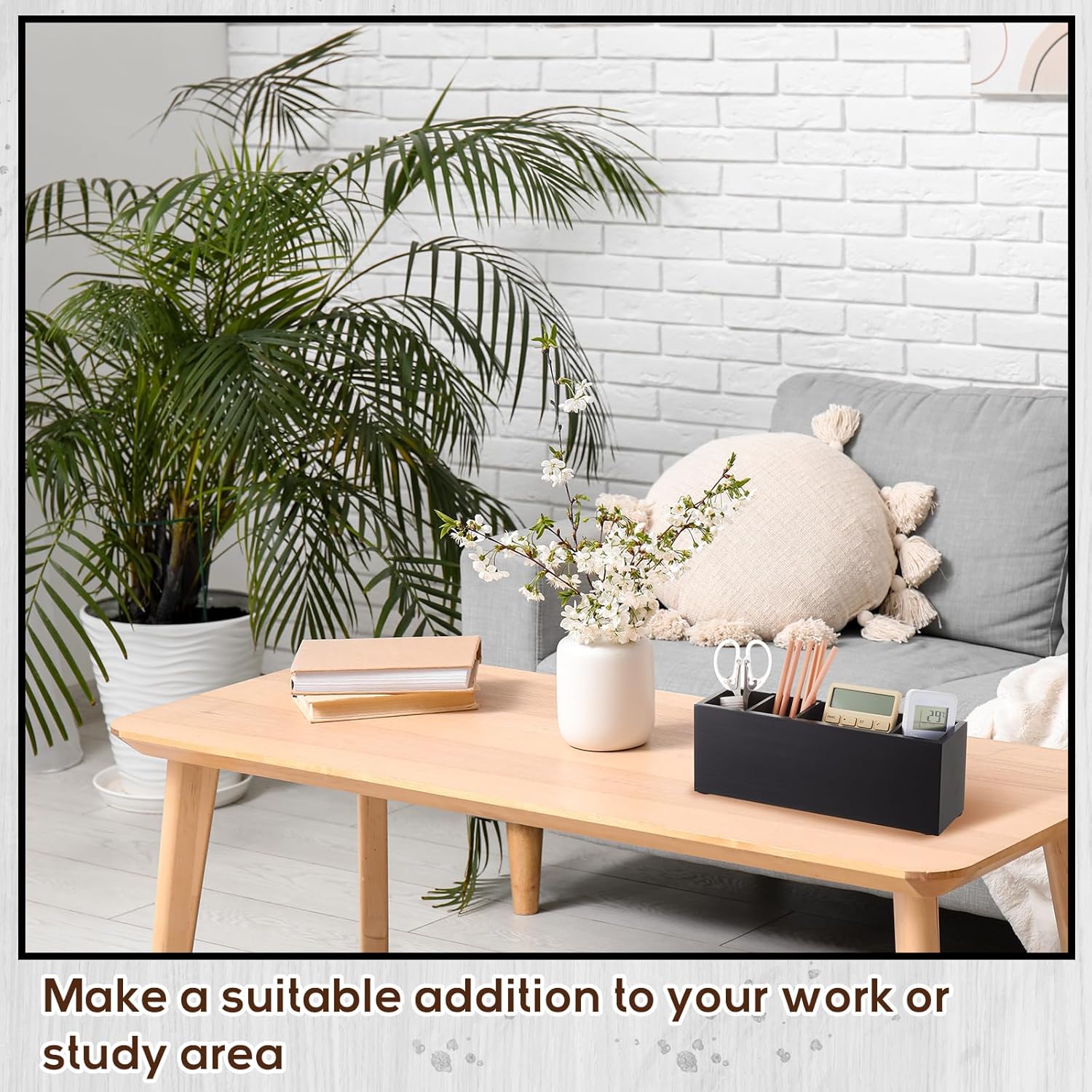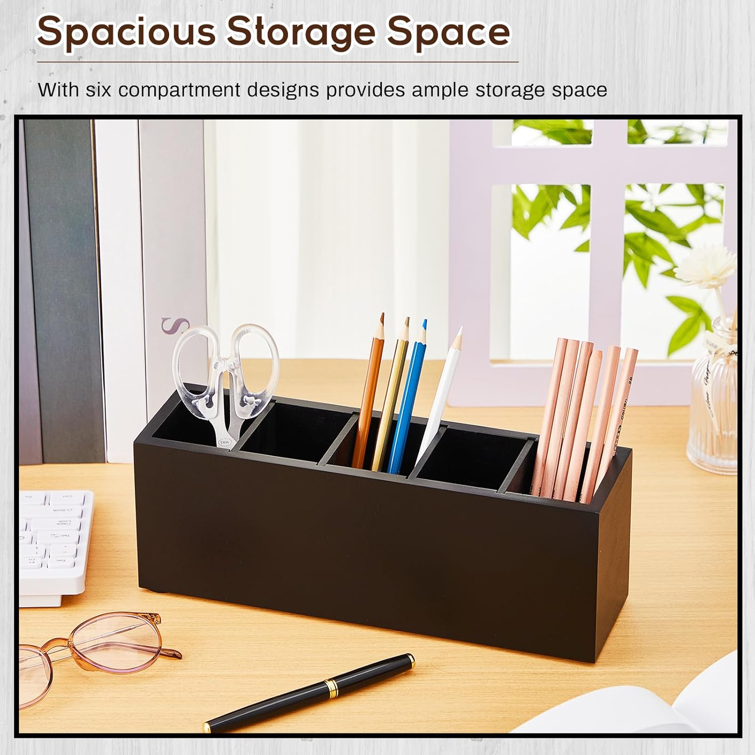 Jetec Wooden Pencil Holder 5 Compartments for Desk Adjustable Pen Holder Wood Office Desk Organizers and Accessories Makeup Brush Organizer for Pen, Home, Office and Art Supplies(Black)