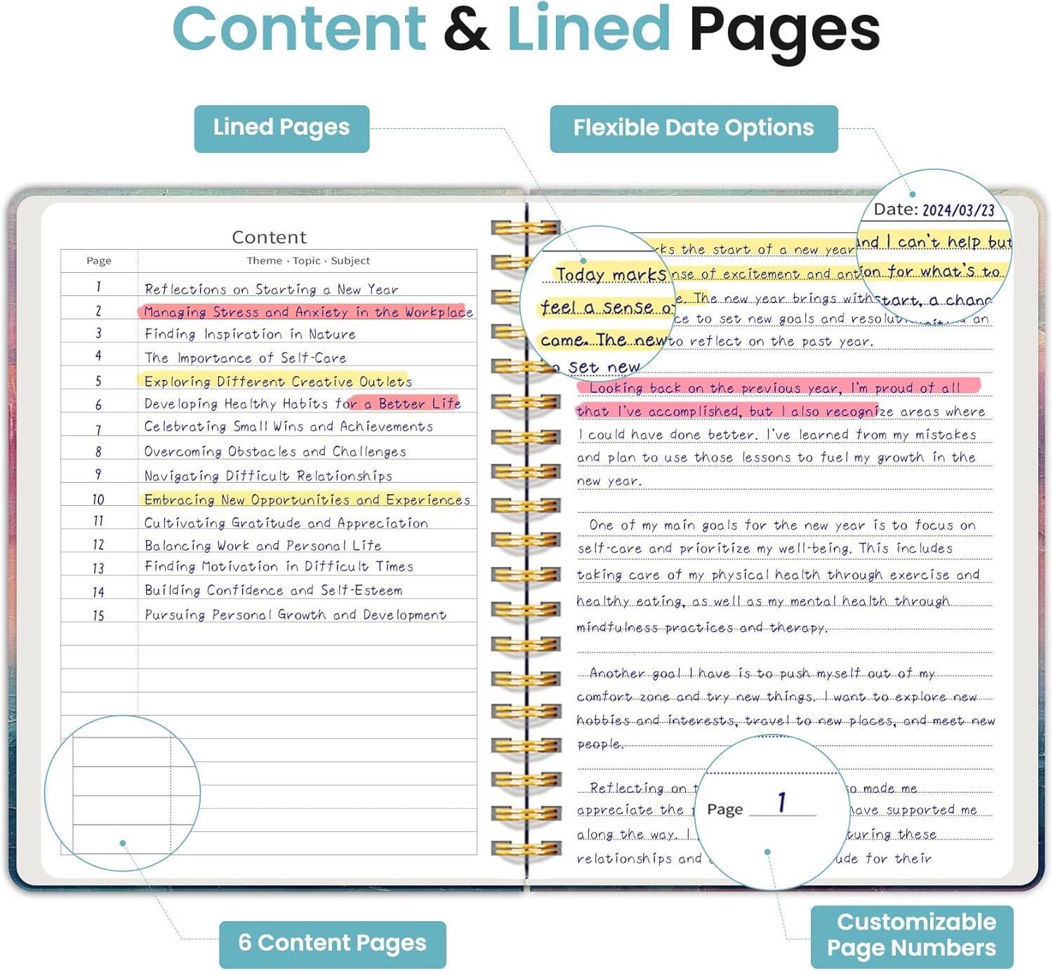 - Structured College-Ruled Pages: Featuring 7mm college-ruled lines, this journal notebook helps keep your writing organized and legible. The evenly spaced lines are perfect for structured notes, work lists, or detailed writing, making it an excellent choice for school students, professionals, and writers alike. It also includes 6 content pages, perfect for creating an index for easy reference.