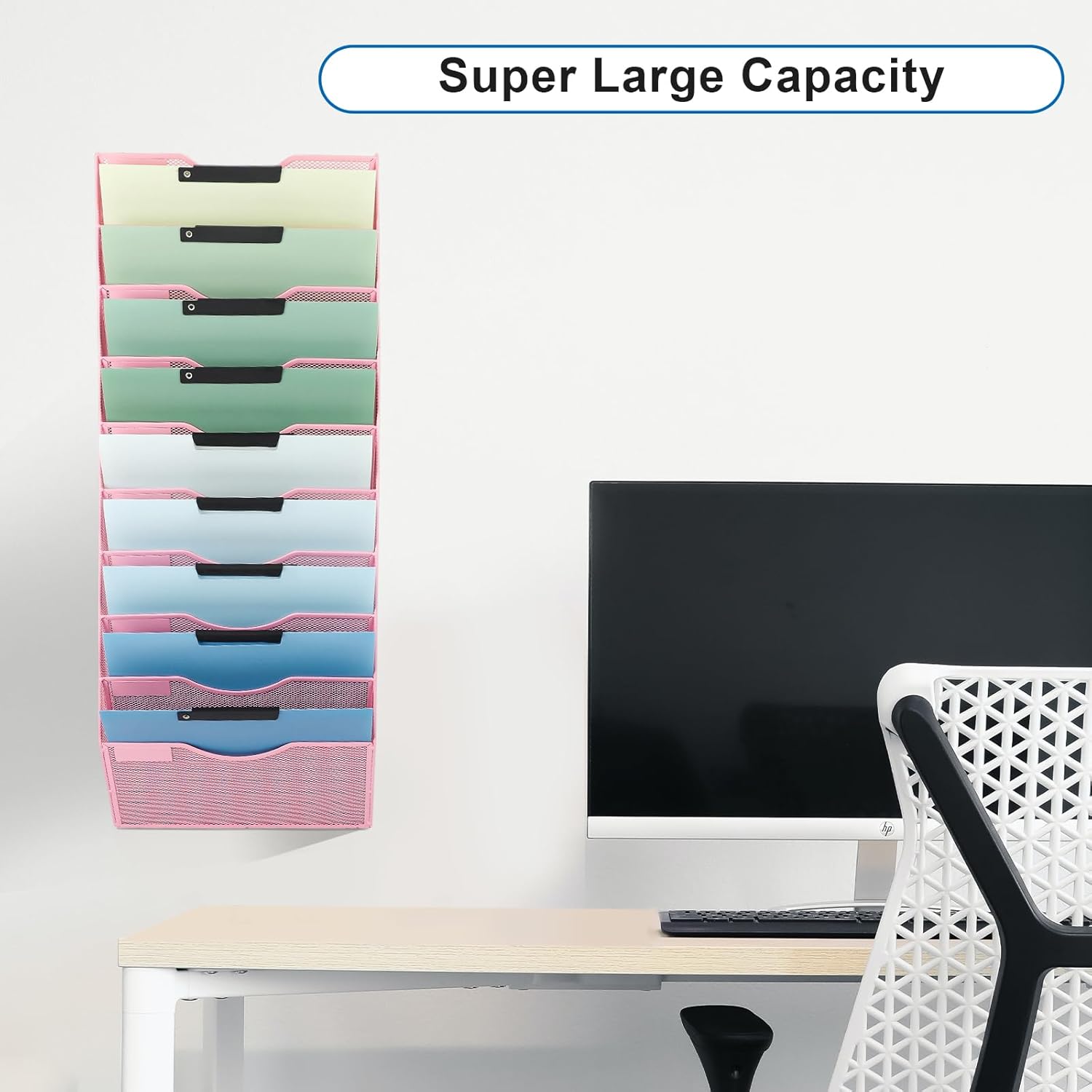 - 10 Pockets: The wall file organizer comes with mounting screws that can be easily mounted on the wall