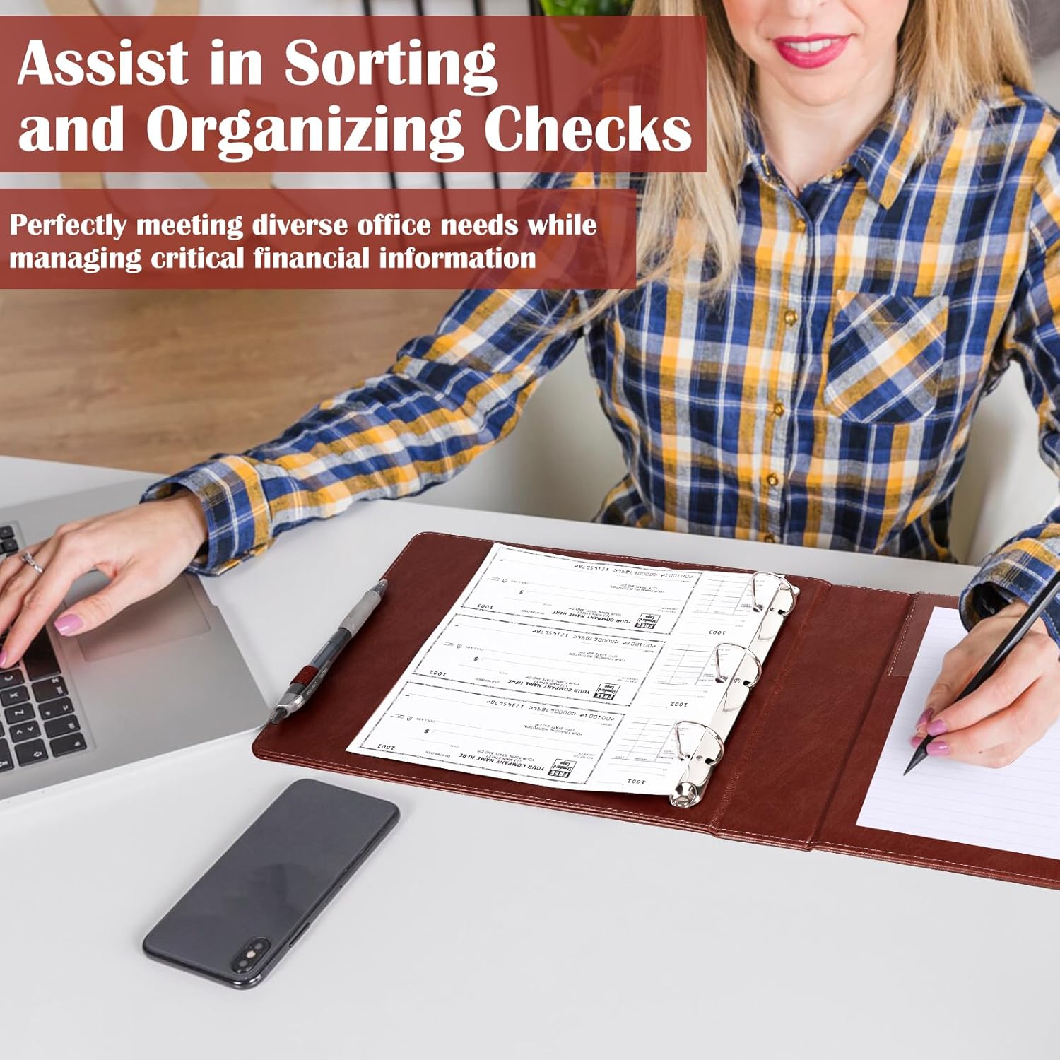 - Versatile Openable Check Organizer:PU leather 3-ring check binder is specifically designed for professionals in the workplace, compatible with both 3-hole and 9-hole checks, meeting diverse office needs. The extended edge design of the cover protects the edges of the check pages, ensuring information security. The business check binder interior features a sturdy, openable D-ring design that not only securely holds the checks but also facilitates easy access, categorization, and organization, enhancing work efficiency.This Binder is designed for COMPACT (smaller size) Checks, not for standard size. Please measure your checks and make sure it fits your checks before ordering!