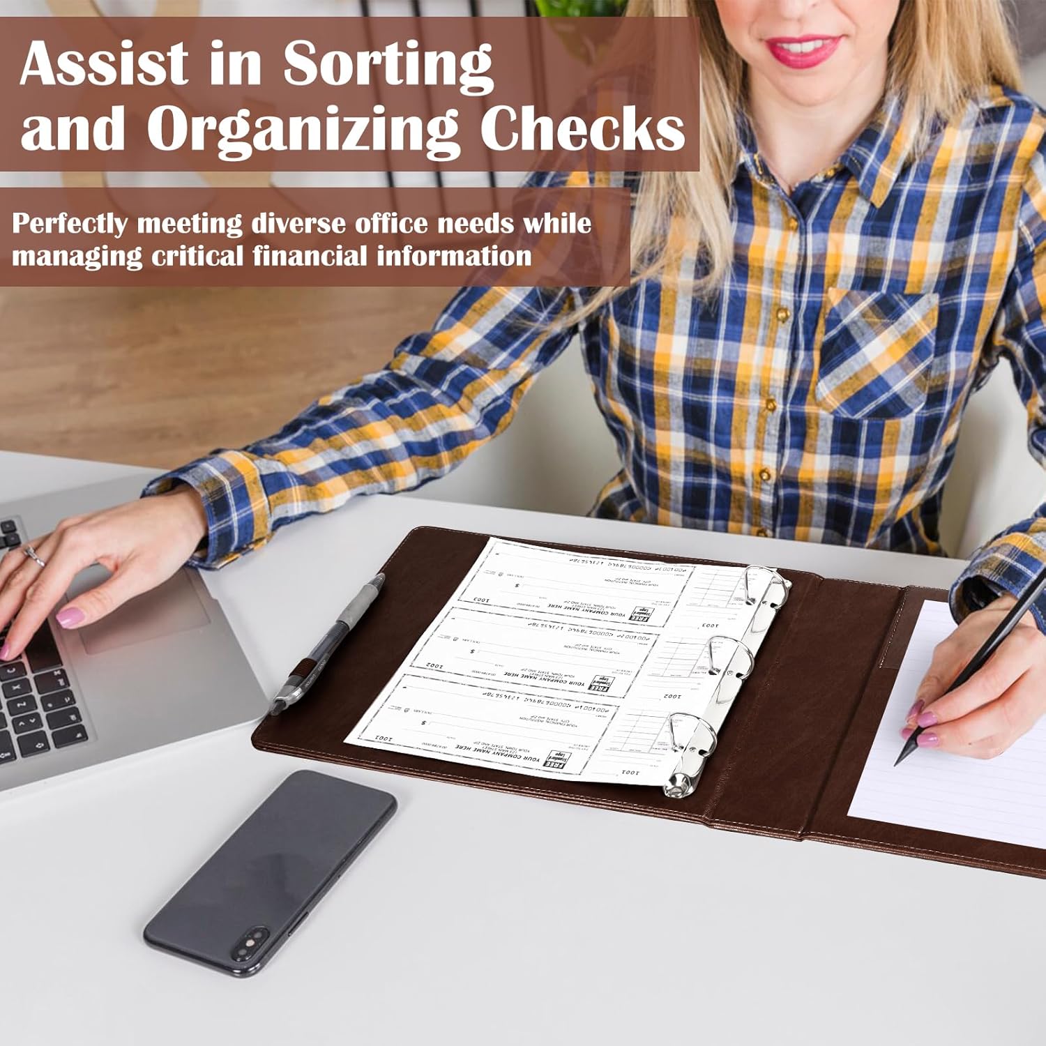 - Versatile Openable Check Organizer:PU leather 3-ring check binder is specifically designed for professionals in the workplace, compatible with both 3-hole and 9-hole checks, meeting diverse office needs. The extended edge design of the cover protects the edges of the check pages, ensuring information security. The business check binder interior features a sturdy, openable D-ring design that not only securely holds the checks but also facilitates easy access, categorization, and organization, enhancing work efficiency.This Binder is designed for COMPACT (smaller size) Checks, not for standard size. Please measure your checks and make sure it fits your checks before ordering!