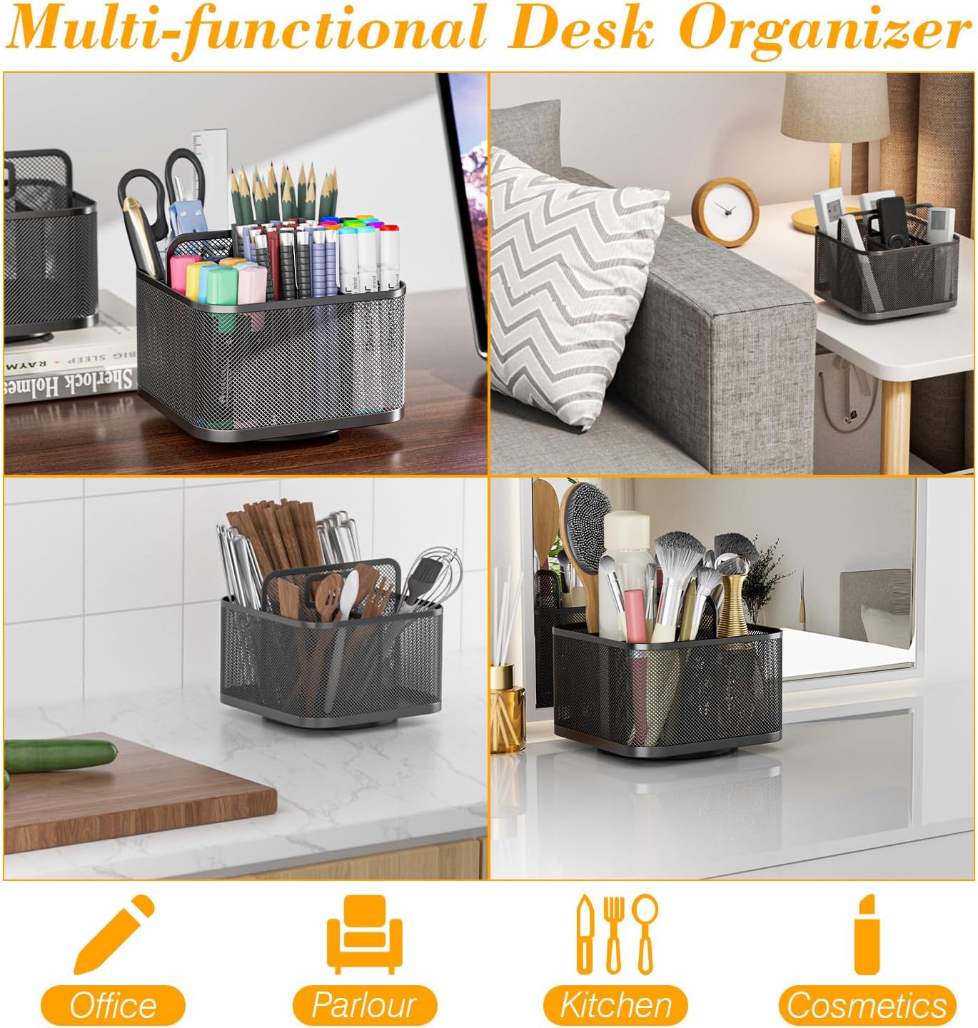 - Versatile Pencil Desk Organizer-Whether you need to store everyday office supplies, art supplies, kitchen cooking condiments, or as a makeup brush holder & office desk accessories, this pencil holder organizer meets your requirements