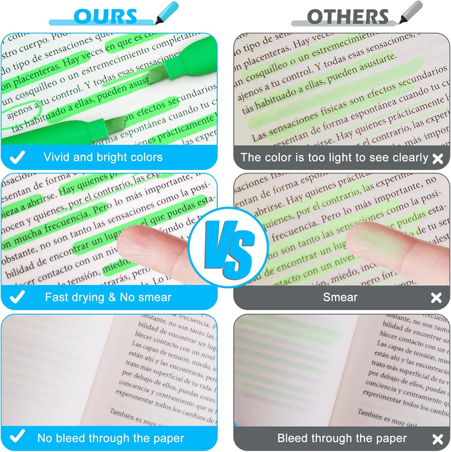 - Fast Drying & Durable: The highlighters pens use durable, quick-drying ink, allowing highlighted marks to be clearly visible without worrying about the ink staining your hands and books. Each highlighter is equipped with a pen cap to avoid ink from drying out for long-lasting use. Please remember to be sure after use keep the pen cap closed to prevent the ink from drying out.