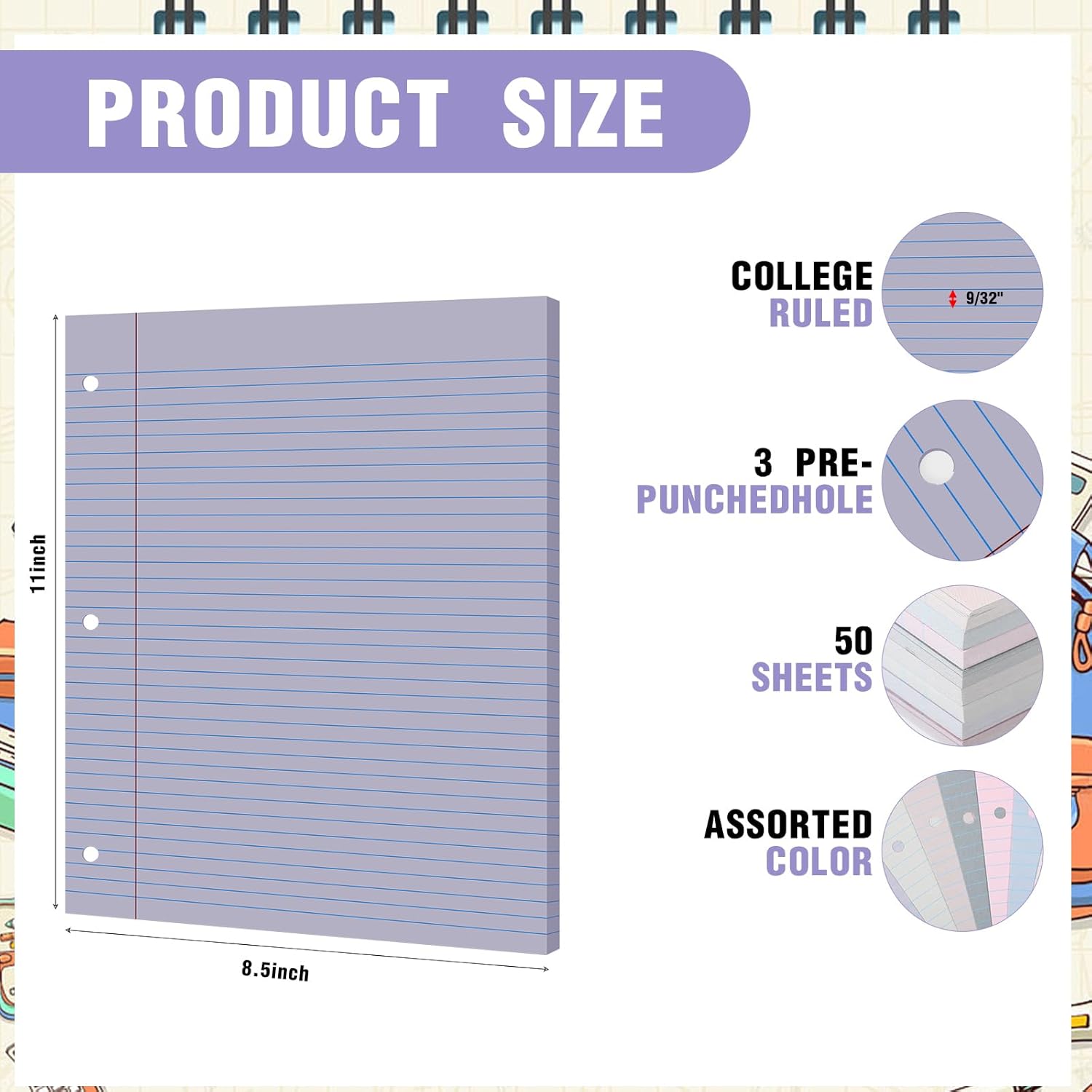 - Compatible with Ring Binders: our college ruled paper has 3 punched holes, making it fit standard ring binders and pocket folders with fasteners, and it can also be applied as standalone sheets