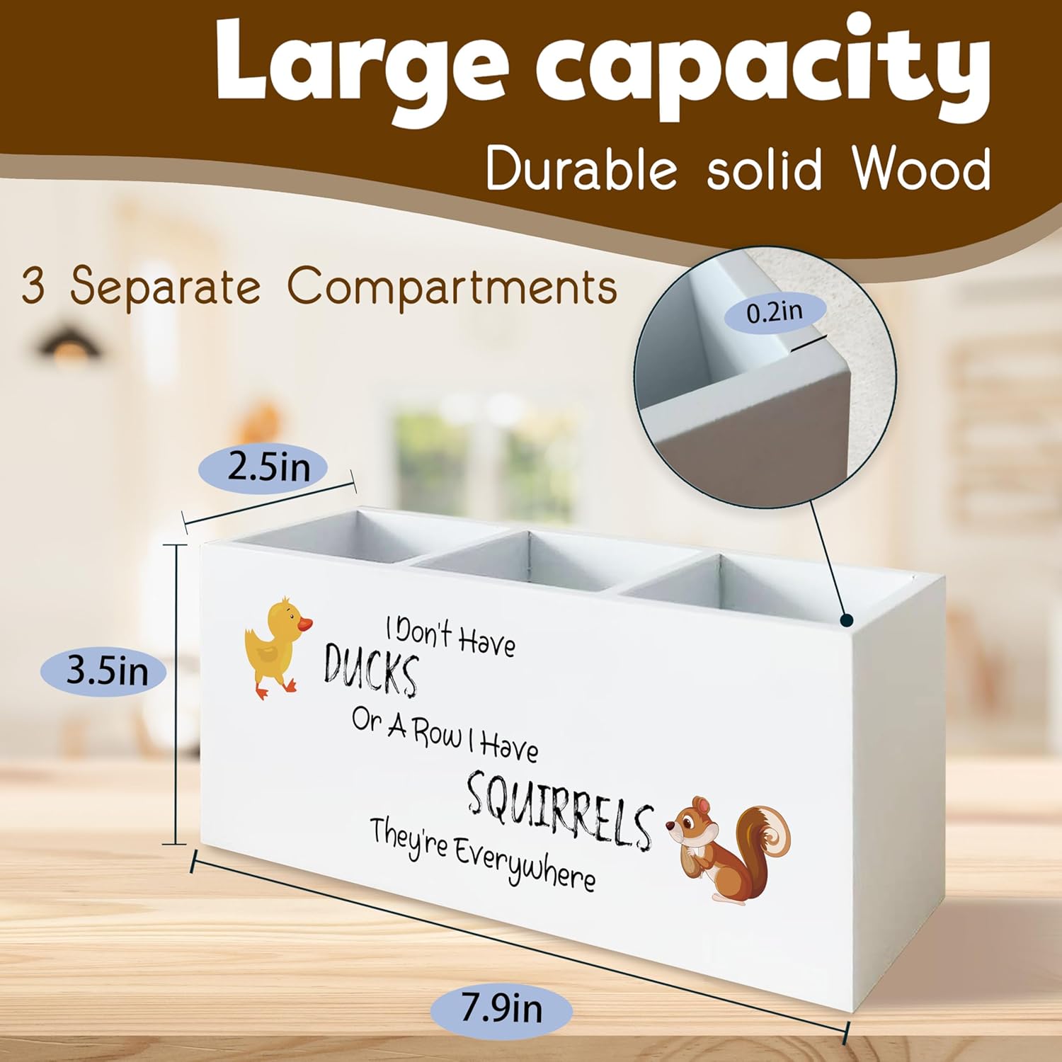 - Three Compartments for Organization: Keep everyday items like pens, brushes, or remote controls sorted and easy to find with three divided sections.