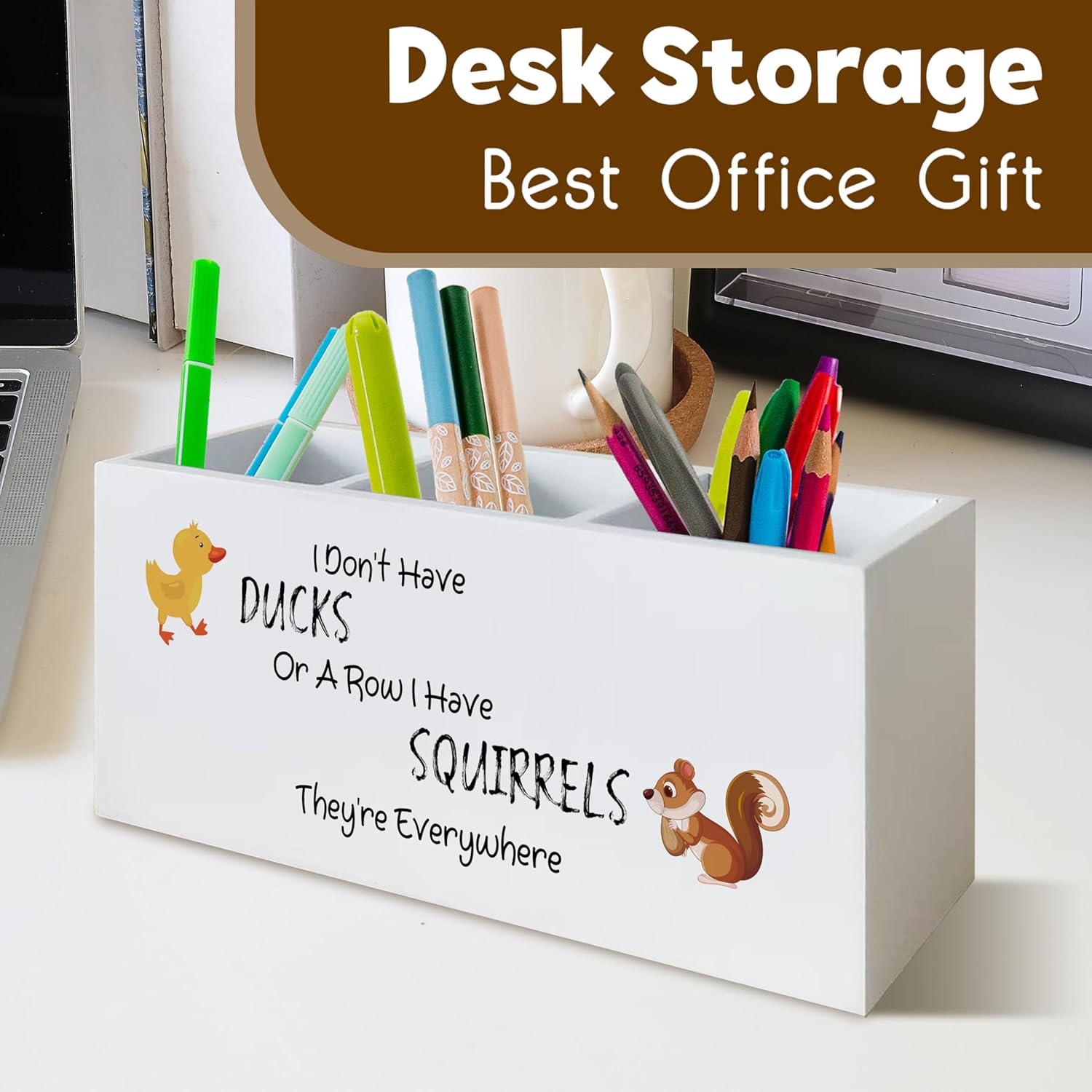 Funny Office Pen Holder for Desk, Dark Humor Office Work Gifts for Women Men Coworkers, I Don't Have Ducks in a Row Humorous Wooden Pen Pencil Holder Organizer for Desk Accessories