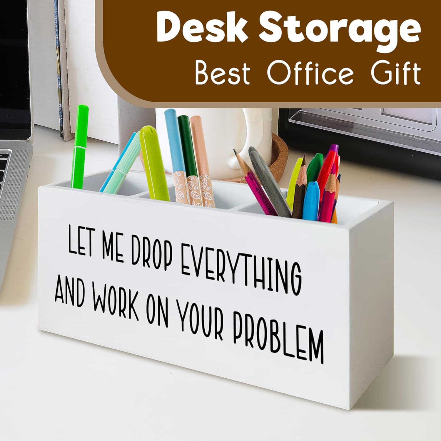 Funny Pen Holder for Desk, Office Humor Gifts for Women Men Coworkers Boss, Work Humor Gifts, Let Me Drop Everything Funny Wooden Pen Pencil Holder Organizer for Office Desk Accessories