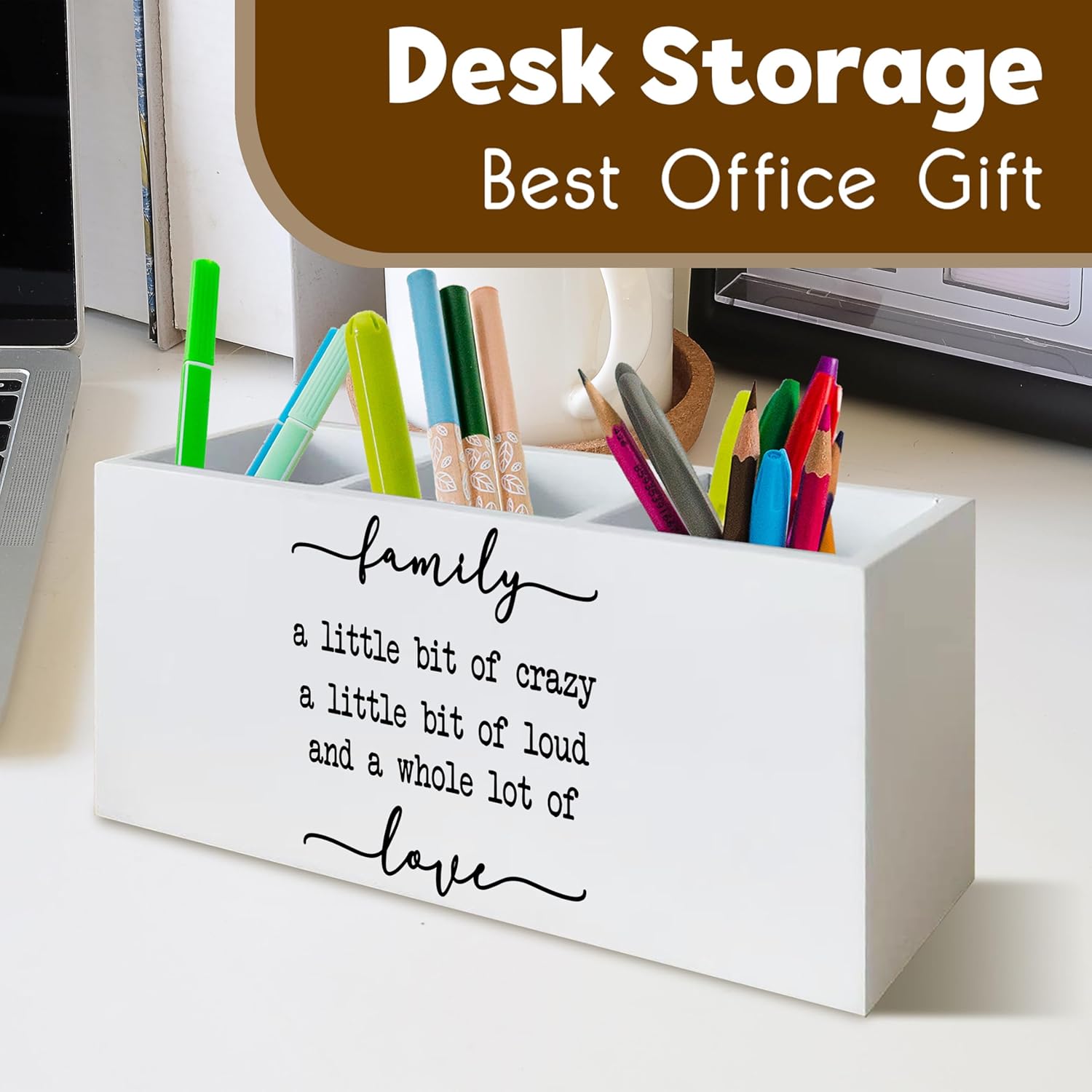 Family Signs Wooden Pen Holder for Home Decor Farmhouse Desk Shelf Decorations for Shelf Decorations, Family a Little Bit of Crazy Rustic Desk Decor for Home Office Table Pencil Holder