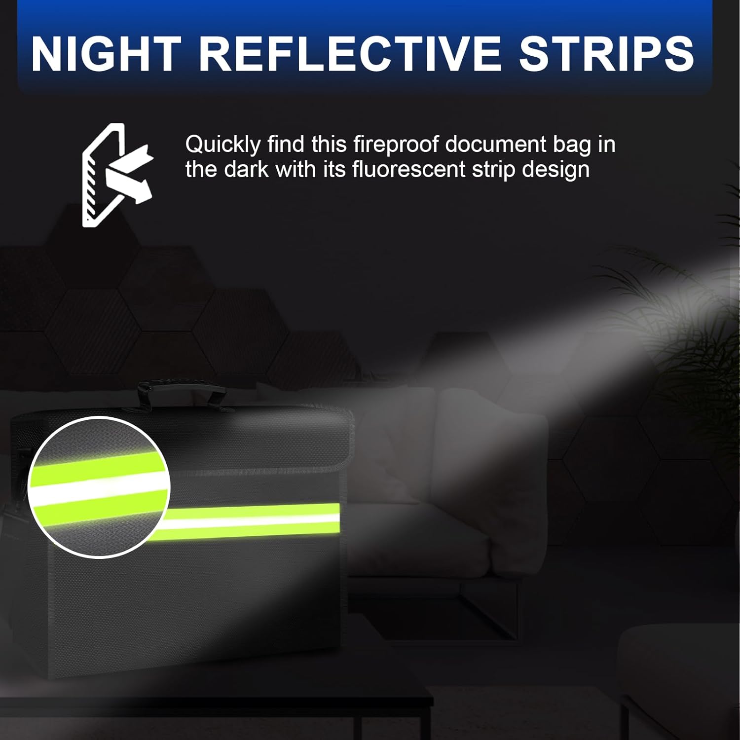 File Organizer Bag with Removable Folder Layers/Wallet,6500°F Fireproof Document Organizer with Lock&Reflective Strip,Portable Home Travel Safe Storage Box for Important Documents(14.1x9.5x4.2 inches)