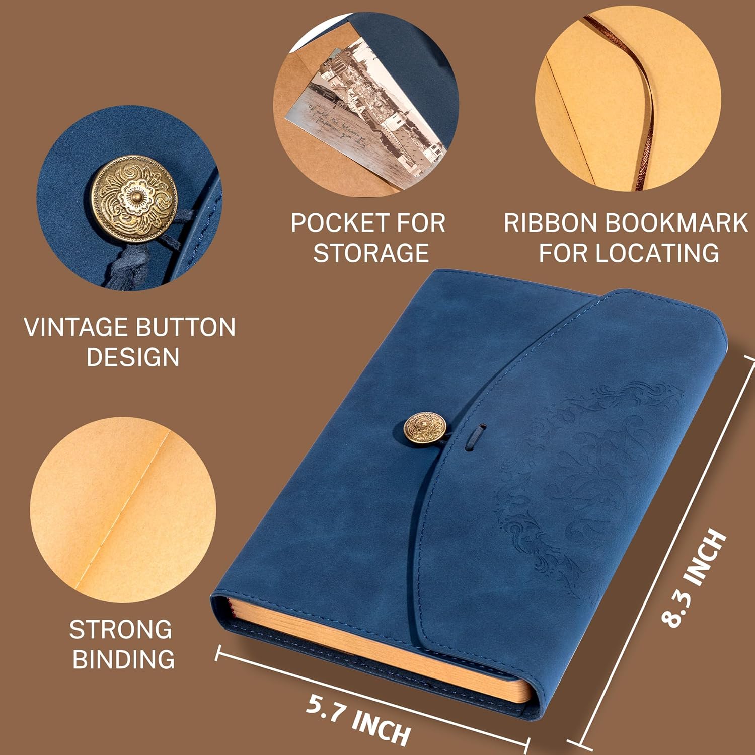 - VINTAGE JOURNAL: The journal cover is made of high quality vegan-friendly leather, which has a soft, suede-like feel, vintage and charming. Exquisite button and string can keep junk journal better closed, stylish embossing add vintage vibe to writing and diary!