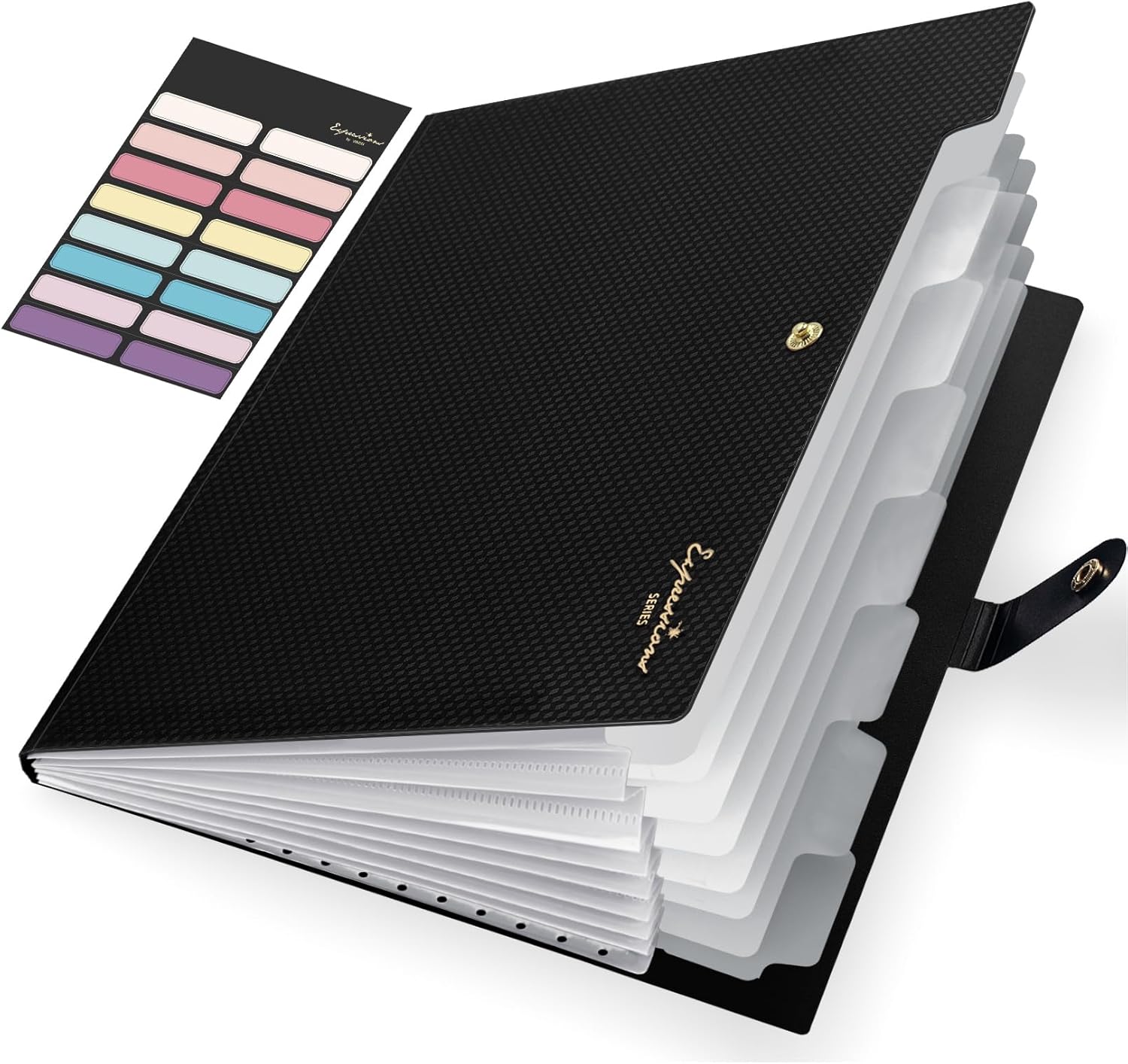 Sooez Accordion File Organizer, 8 Pocket Expanding File Folder with Labels, Letter Size Folders for Documents, Portable Paper Bill Receipt Organizer for Home School Office Supplies, Black