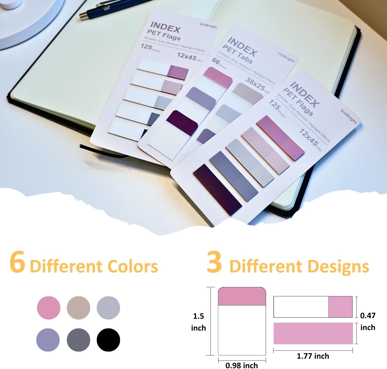 UniBright Sticky Index Tabs Combo Pack 316 Pcs Tabs for Notebooks Page Markers Page Tabs Book Tabs and Annotation Tabs Assorted Morandi Colors