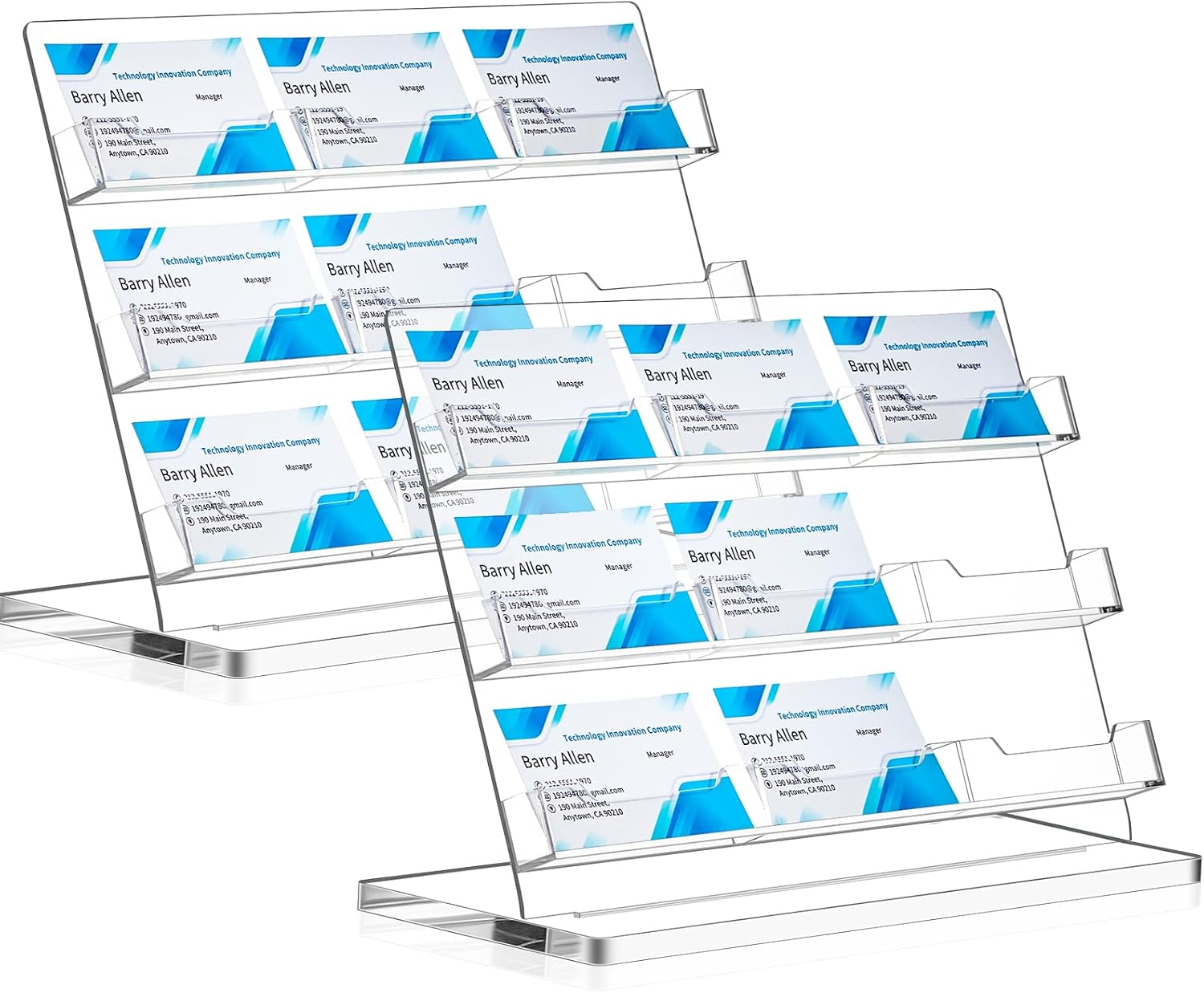 - Intuitive Structure: you will receive 2 business card stands, our business card holder for desks features 3 tiered and 9 slot design, which helps in maximizing space utilization; The slanted angle offers easy display of your business cards, ensuring that they remain unobstructed and easily accessible
