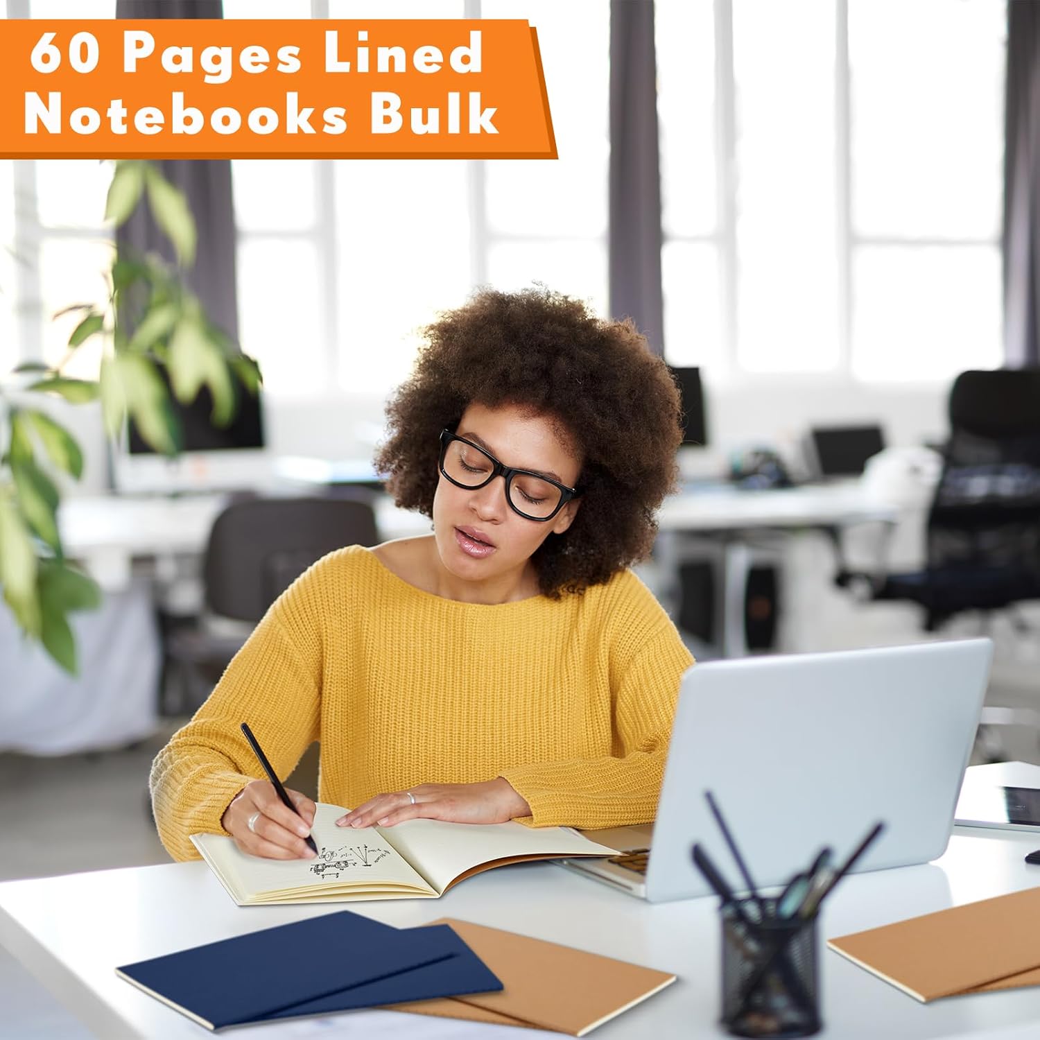Mimorou 100 Pcs Kraft Notebook Journals 5.5 Inch x 8.3 Inch A5 Softcover Notebooks Bulk for Writing Sketch Office Notepad with 60 Pages 30 Sheets(Brown, Navy,Unlined)
