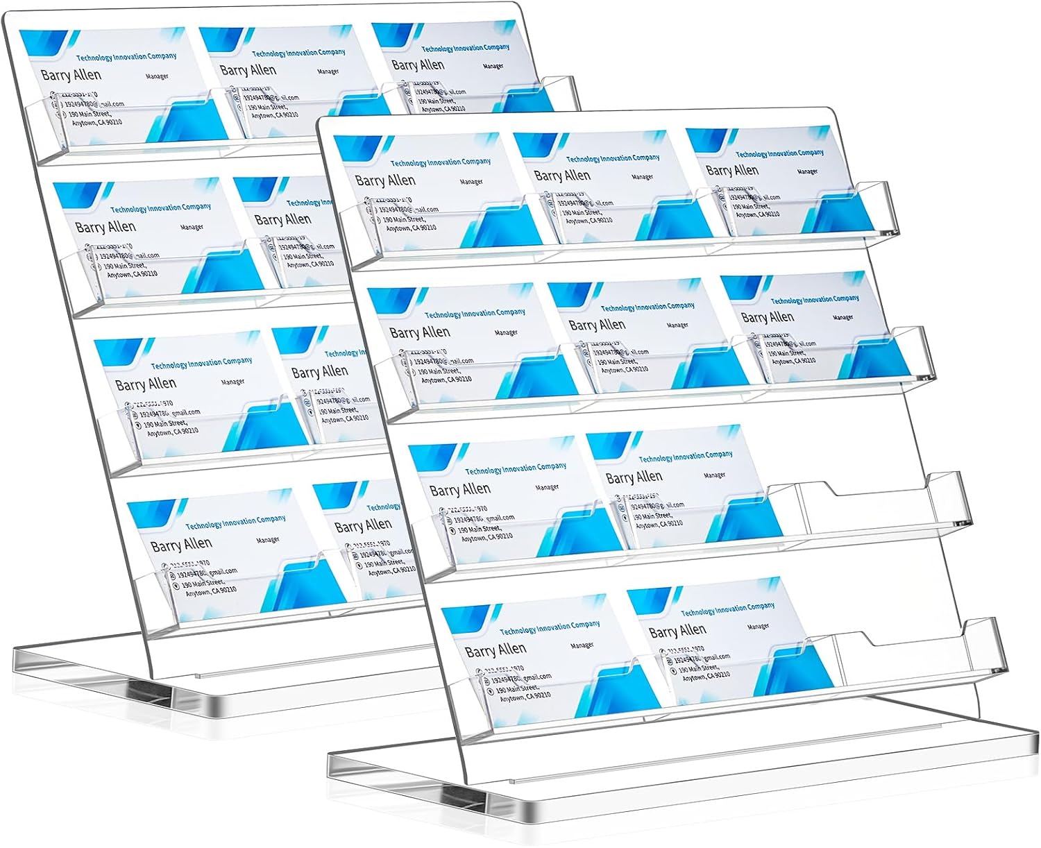 - Intuitive Structure: you will receive 2 business card stands, our business card holder for desks features 4 tiered and 12 slot design, which helps in maximizing space utilization; The slanted angle offers easy display of your business cards, ensuring that they remain unobstructed and easily accessible