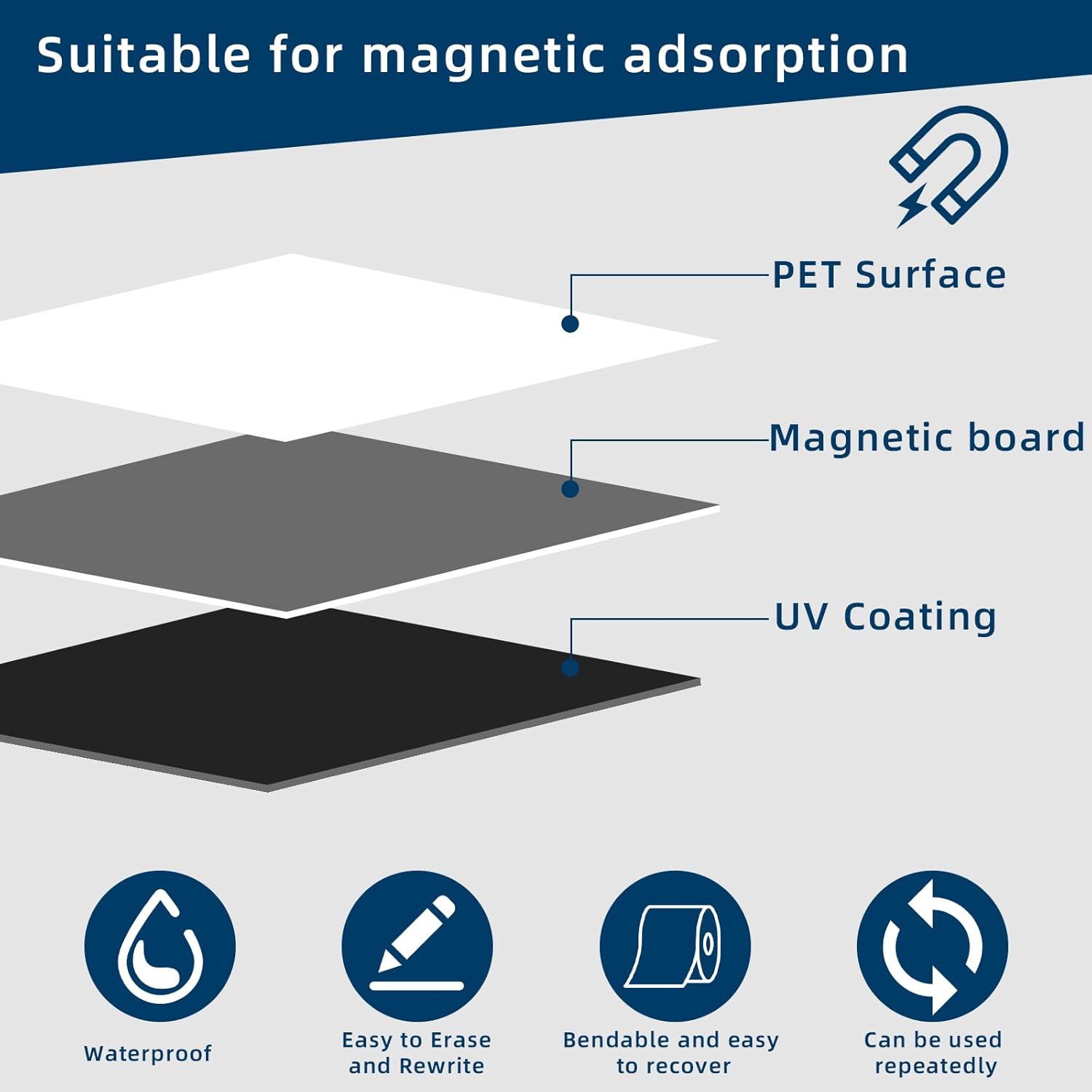 - Magnet attraction:The magnetic whiteboard paper contains high-quality strong magnetic materials, has a strong magnetic attraction (the magnetic nail can hold about 3 A4 papers), and can hold a variety of magnetic objects. With the magnetic board magnet, you can firmly fix the desired documents or pictures on the magnetic wall, making it a great choice for office and home use