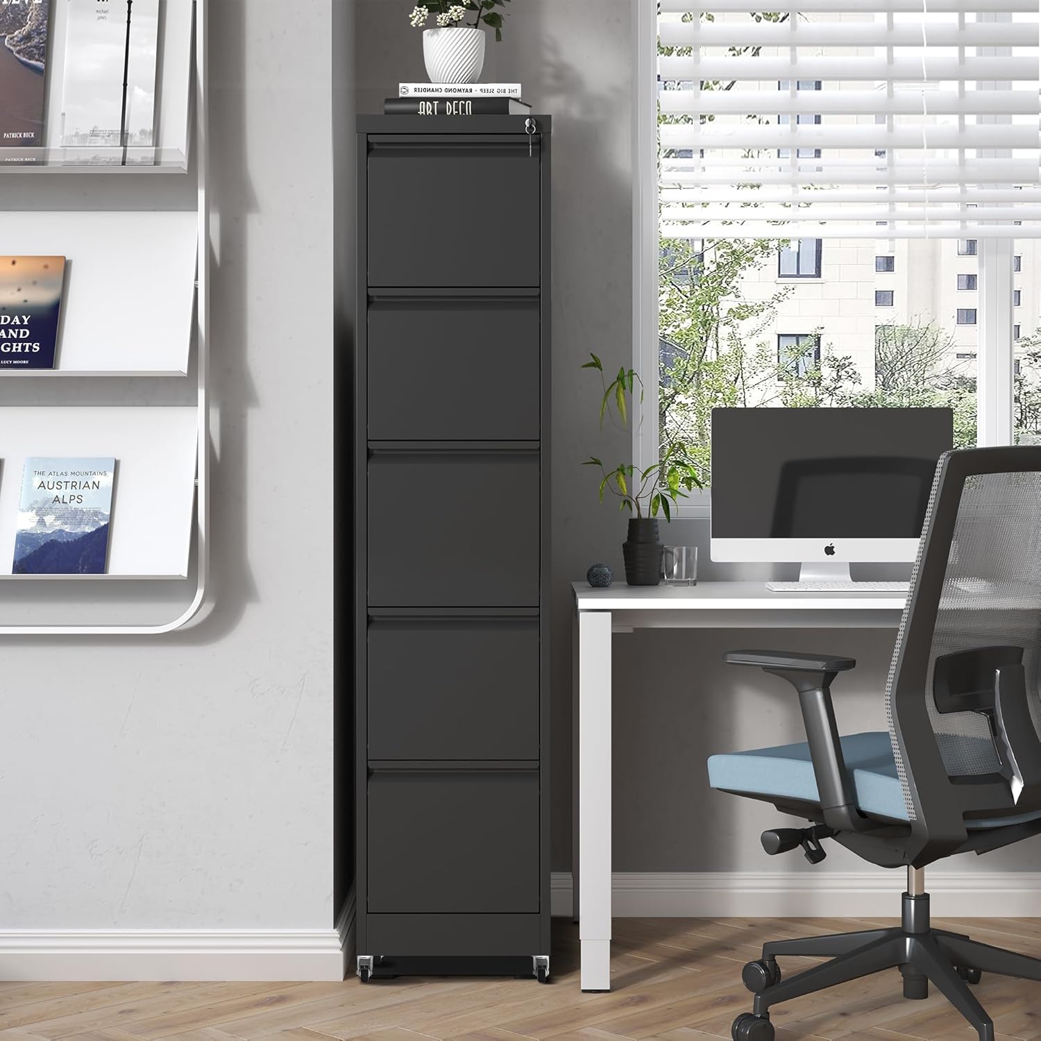 - 【Secure & Anti-tilt Design】Our office filing cabinets with 5 drawer feature a locking mechanism and anti-tip feature. When one drawer is opened, the interlocking drawer system prevents the other drawers from opening, preventing tip-overs and increasing safety.