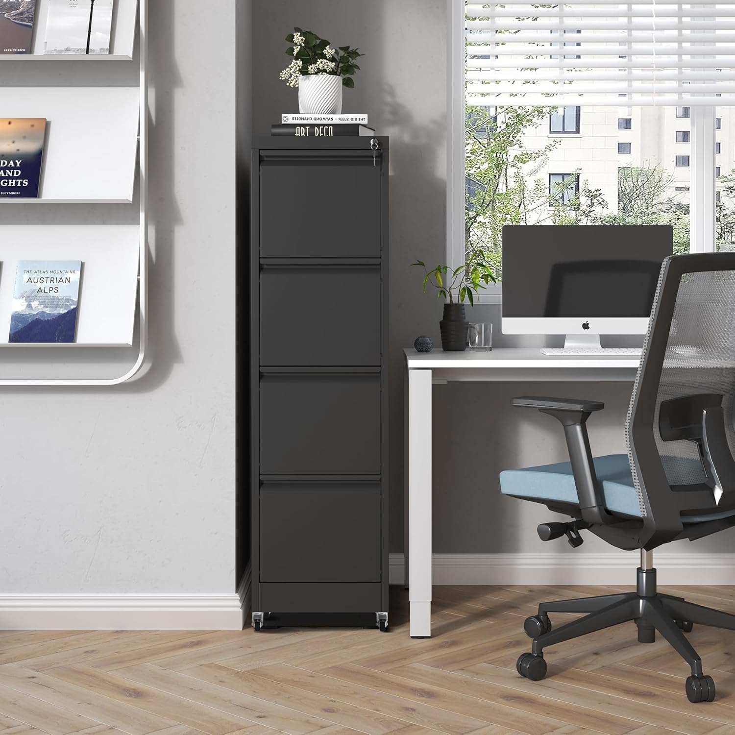 - 【User-Friendly Design】 The 4 drawer mobile filing cabinet equipped with 2 keys, when you leave the office, you can lock 4 drawers at once, to ensure your privacy and file security. And it built-in slide rail, drawer open and close smoothly, quiet, suitable for use in the office environment. The wheels can rotate 360° for easy movement.