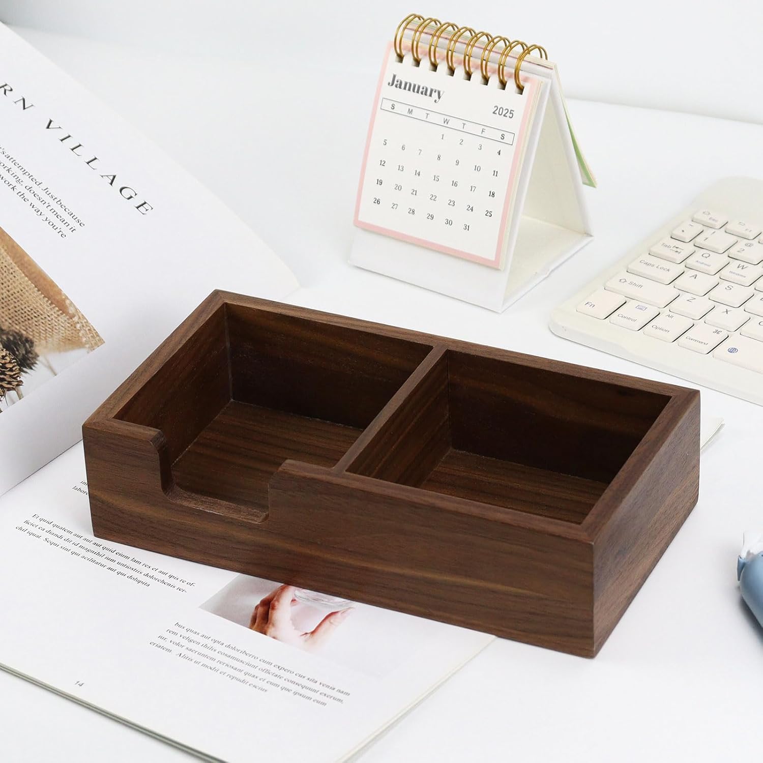 - πΏ Premium Walnut & Non-Slip Design: Handcrafted from solid black walnut wood with unique grain patterns, this desk organizer features 4 silicone pads underneath to prevent sliding and protect surfaces. Its polished finish resists daily scratches better than plastic/acrylic holders.