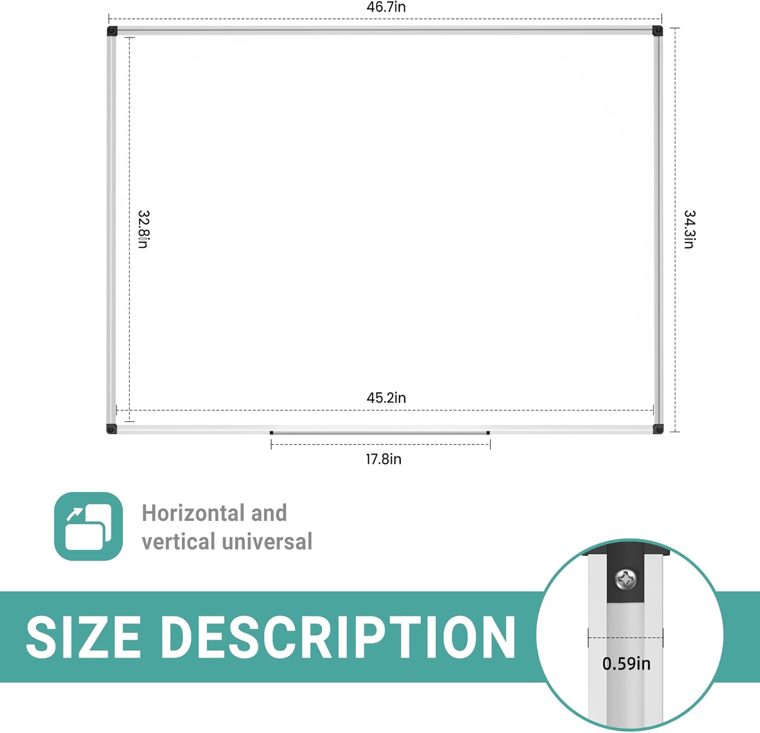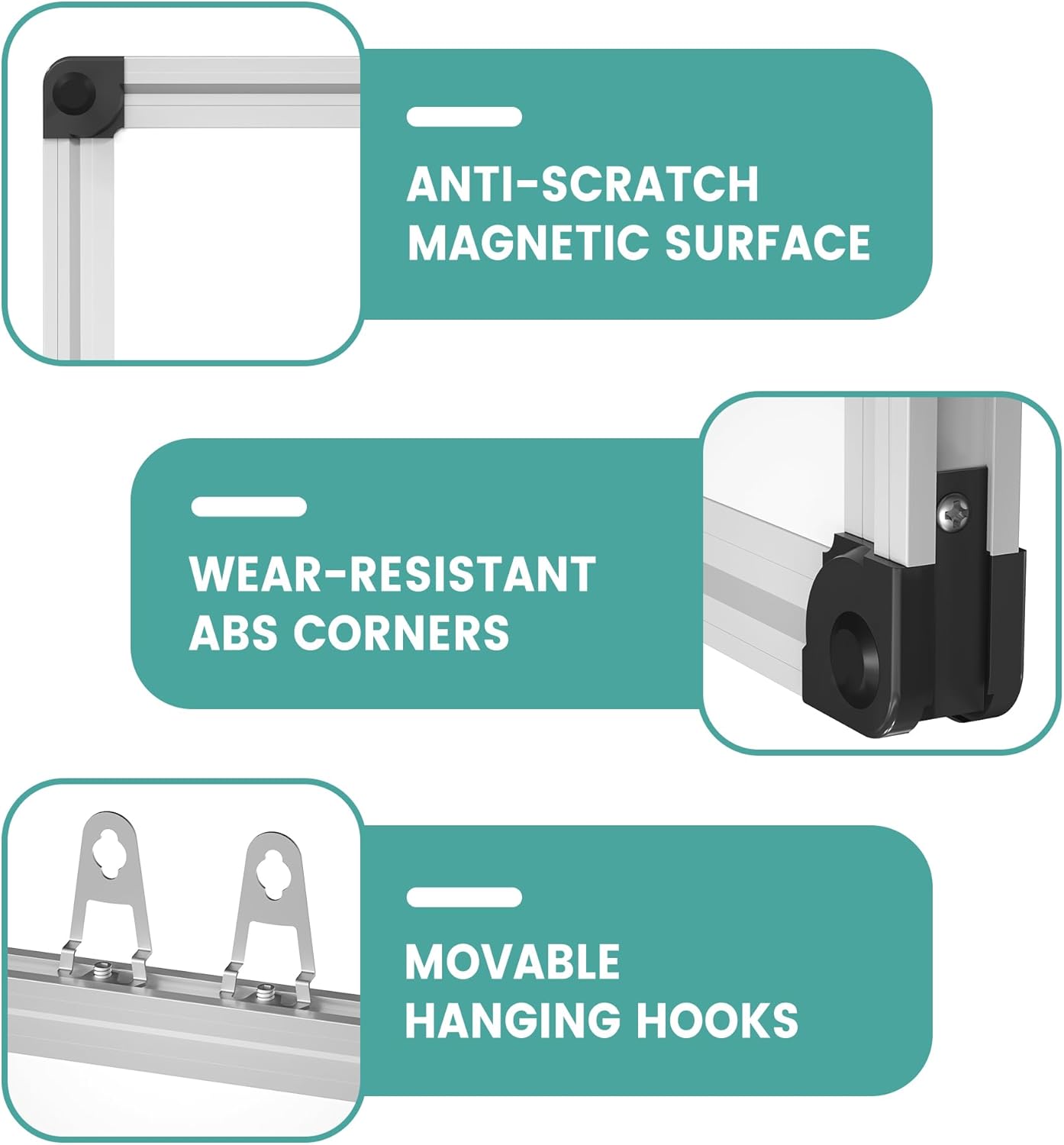 - Great Accessories: 1 Magnetic Eraser, 2 Markers, 1 Detachable Marker Tray, 6 Magnets, Sturdy aluminum frame built with ABS plastic corners, with no sharp or pointed edges