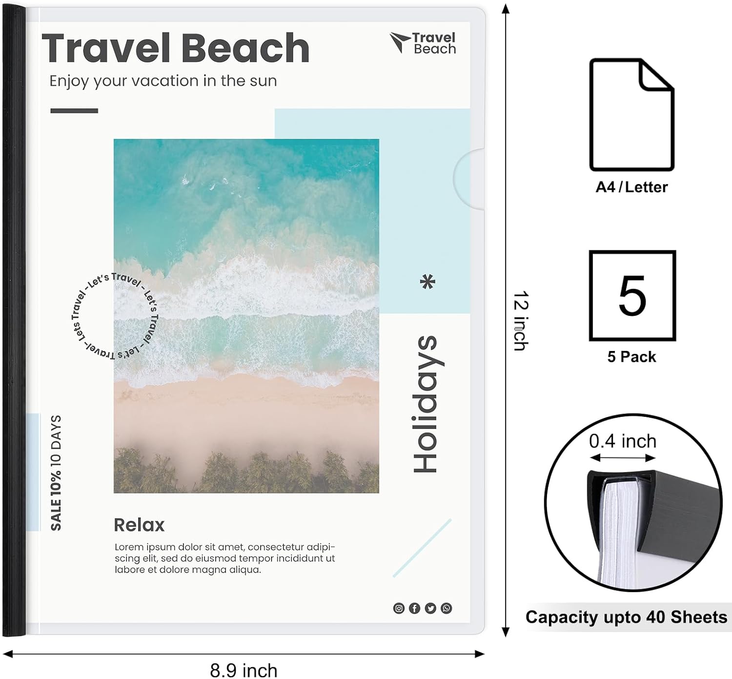 - 40 Sheets Capacity Paper Binder: 8.9 in width and 12 in length, suitable for both A4 size and Letter size paper, can hold more than 40 pieces of papers, exquisite and sturdy