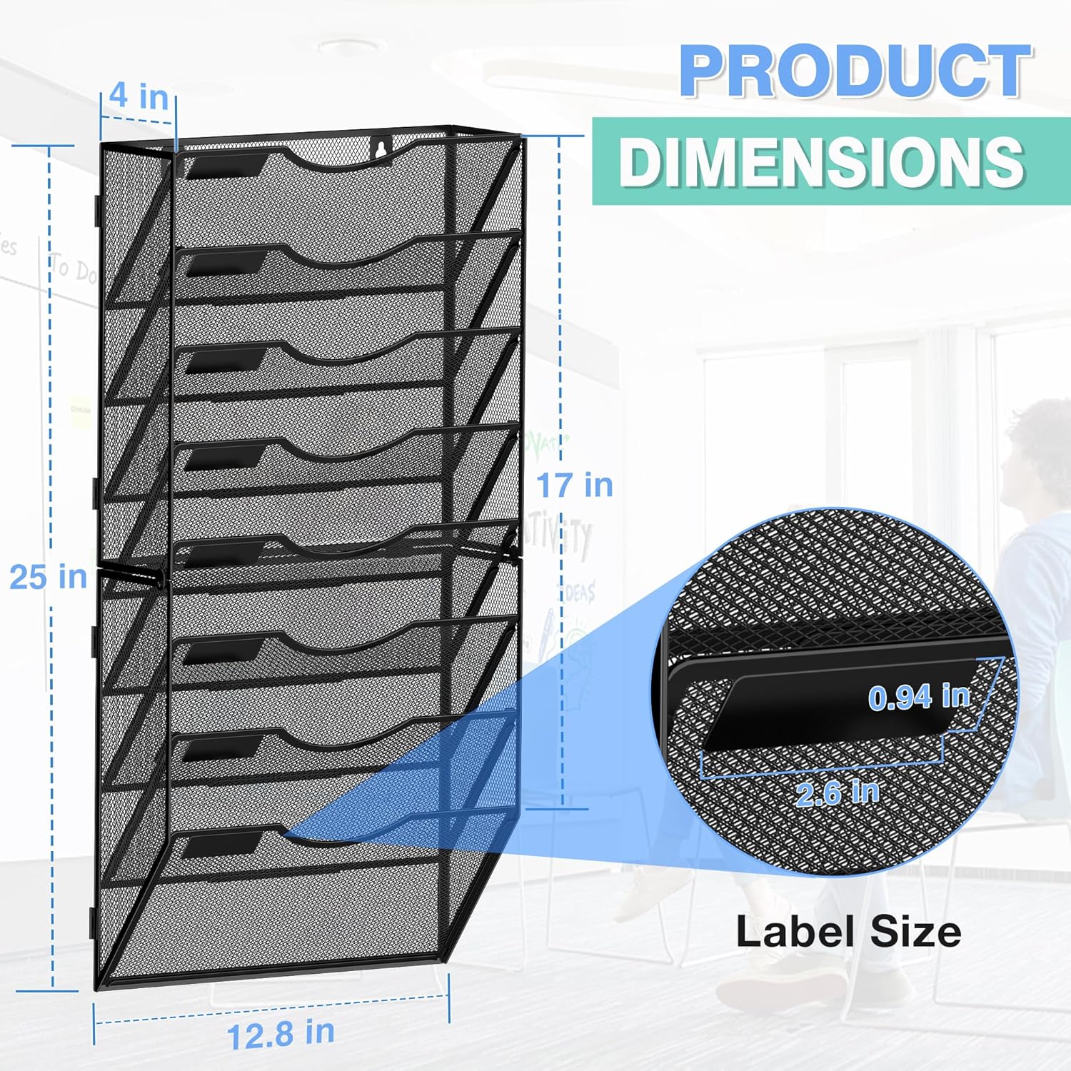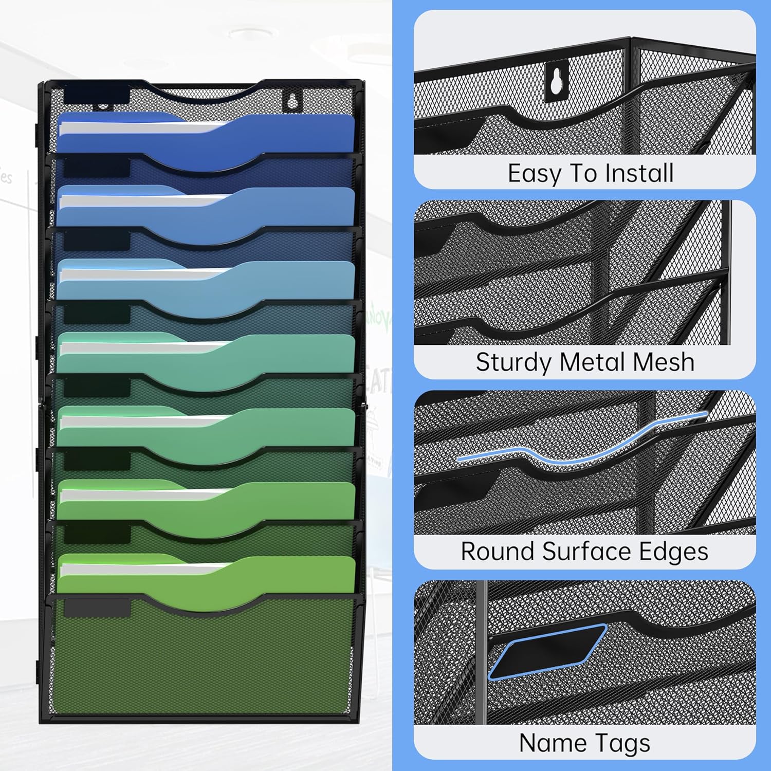 Kuntine.B Wall File Organizer Office Hanging Magazine Holder Wall File Organizer for Office Home (Black, 8 Tier)