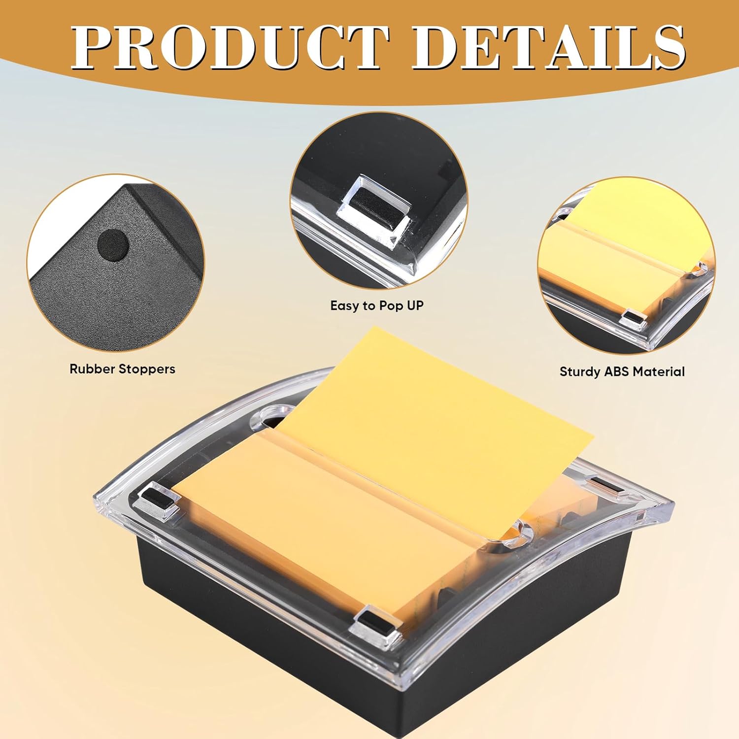 4 Pcs Pop Up Note Dispenser,Sticky Note Holder ,3 x 3 Inch,Clear Top and Black Base Sticky Notes Dispenser for School Office Home Store Classroom Desk Supplies