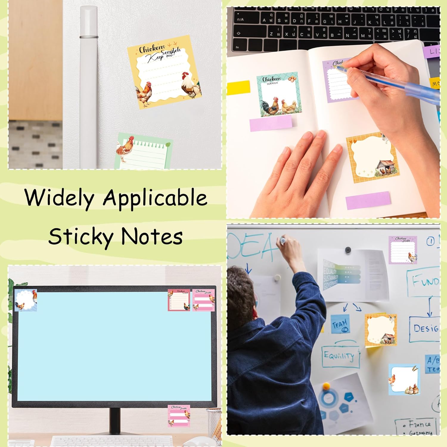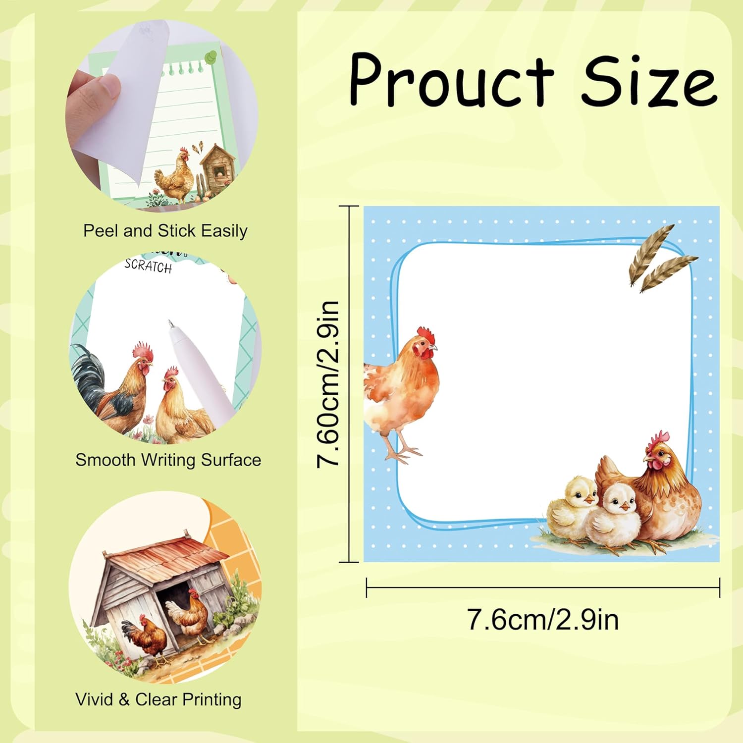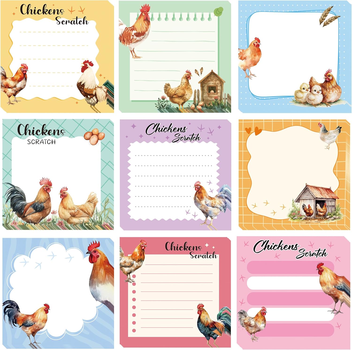 9 Pack Farm Chicken Sticky Notes Set, 450 Sheets Cute Hen and Rooster Self-Stick Notepads with Country Coop Designs, Fun Gifts for Women Chicken Lovers or Office Use