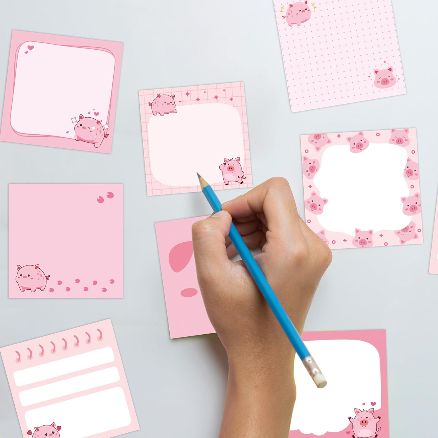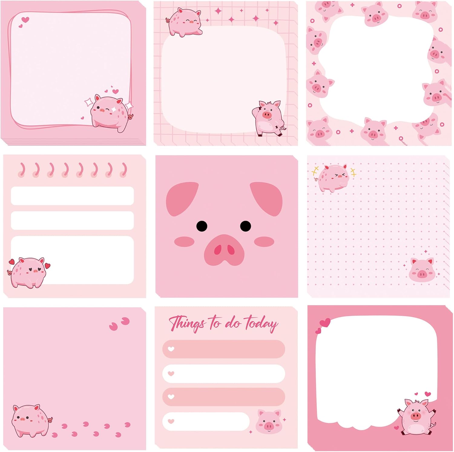 - Adorable Piggy Designs: Includes 9 pink cartoon layouts with chubby pig illustrations, footprints, hearts, and to-do list formats that add charm and fun to any workspace or notebook