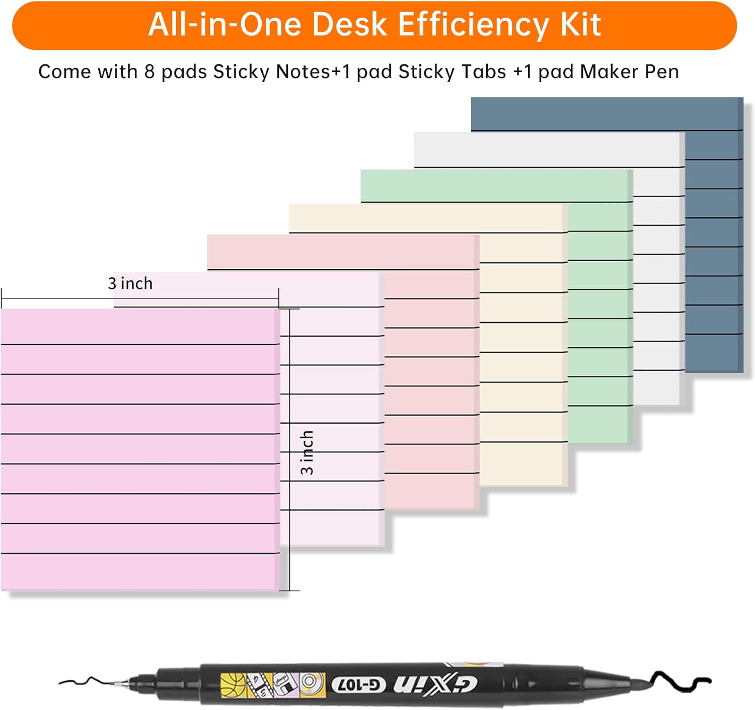 - 【All-in-One Desk Efficiency Kit】Get 7 pads sticky notes(3x3 inch) + 1 pcs black marker in a portable set. Streamline studying, meetings, or projects—no more hunting for supplies!