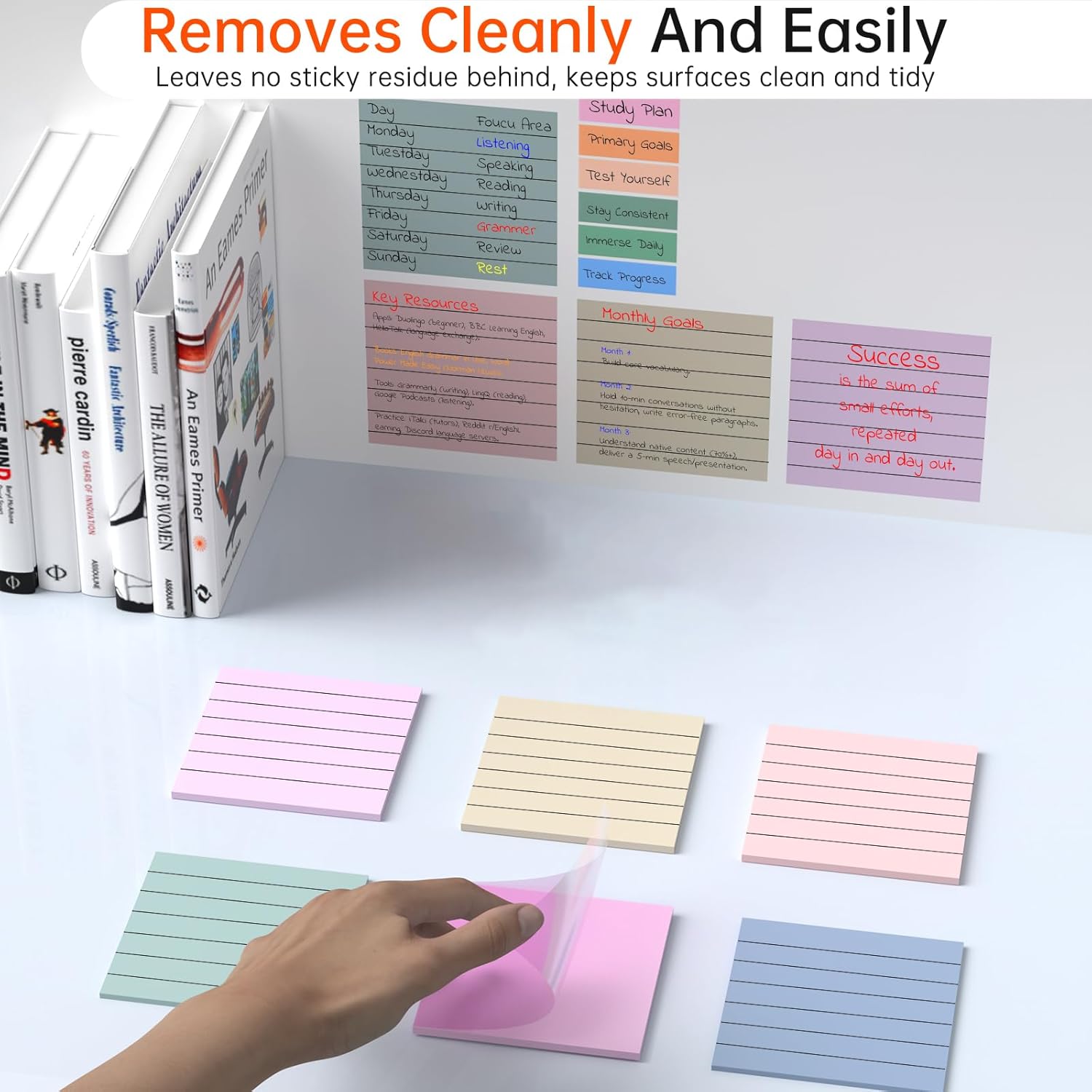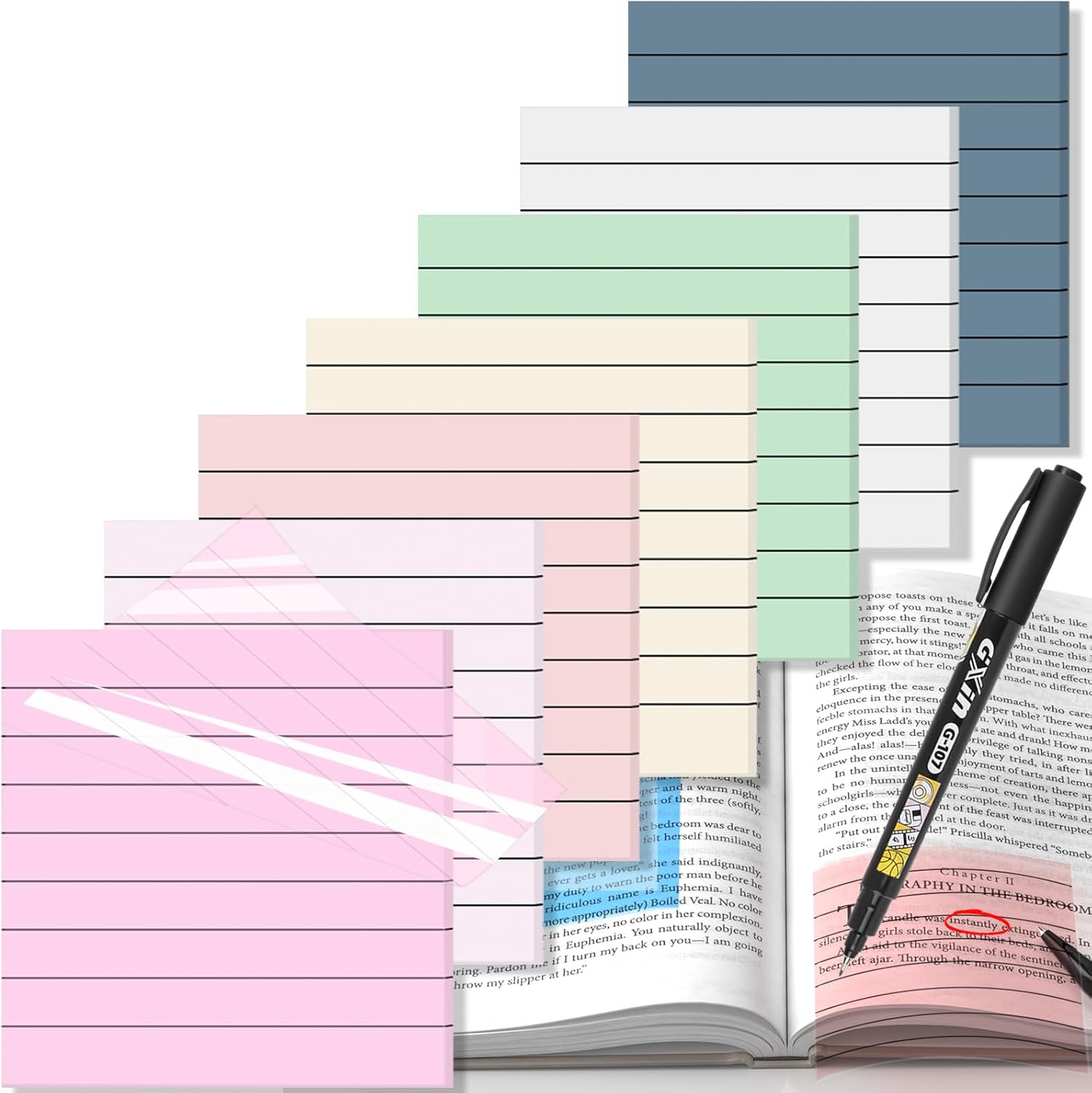 Transparent Sticky Notes with Lines, MEIGAONE 8 Pack Lined Sticky Note 3x3 Super Strong Adhesion, Waterproof Clear Sticky Note for Study, Book,Office,School Supplies