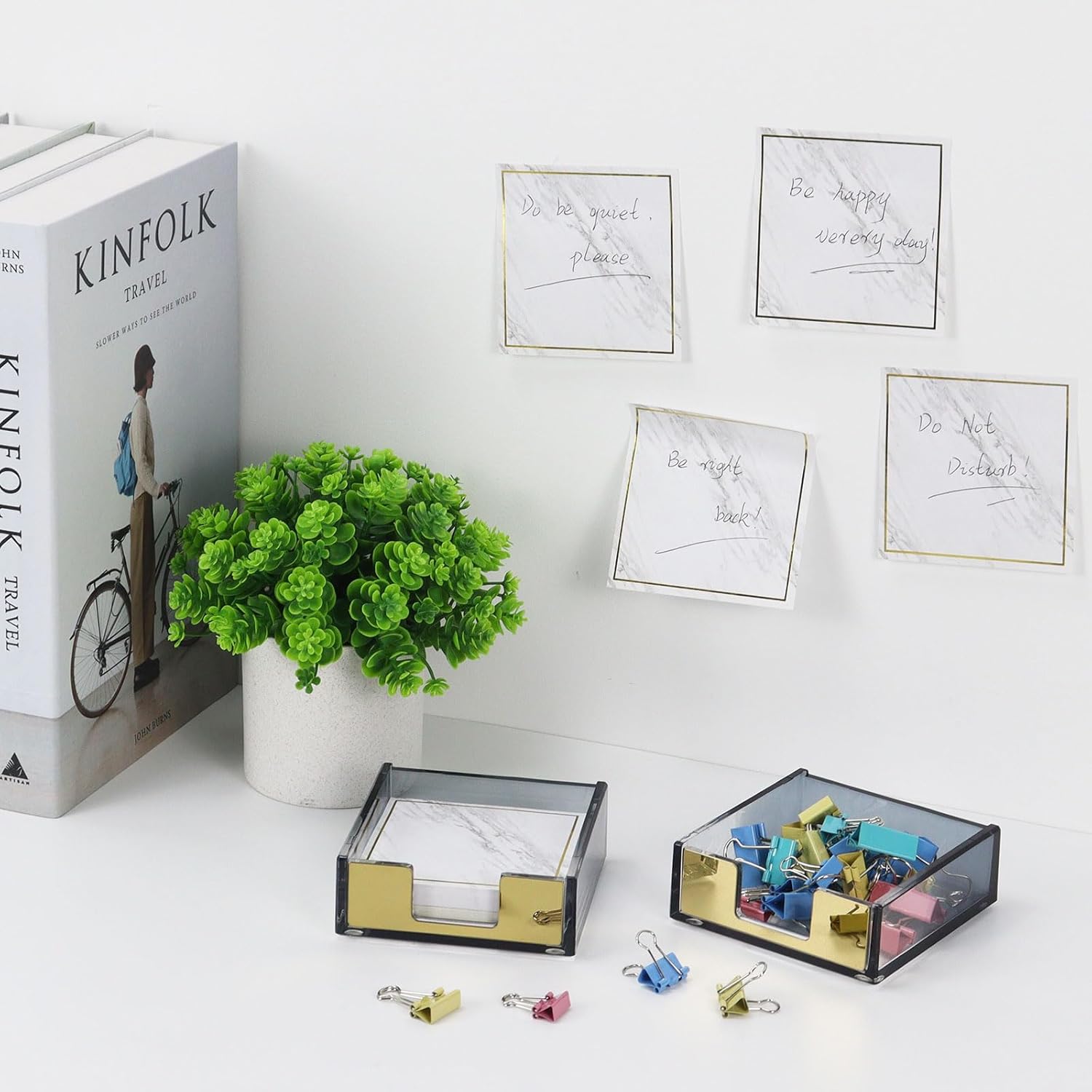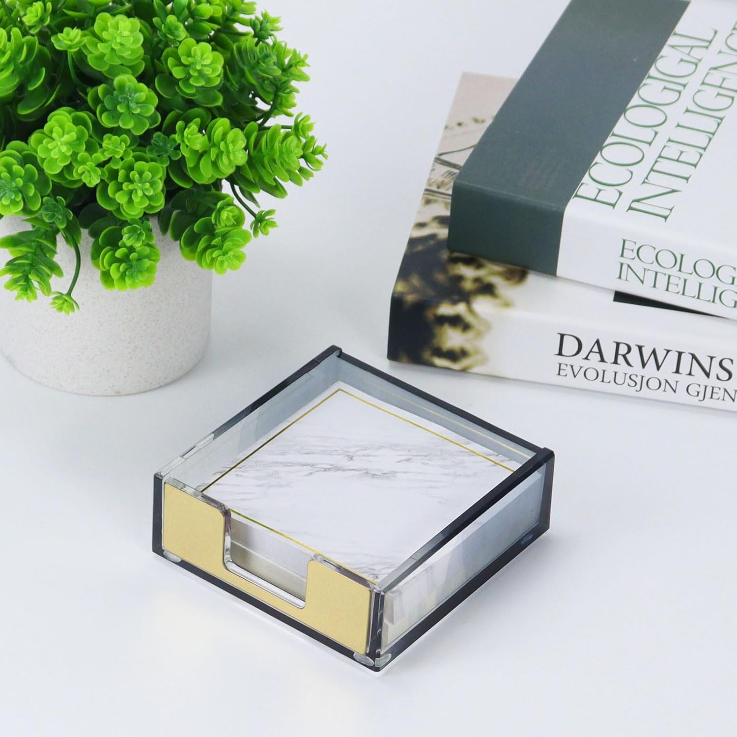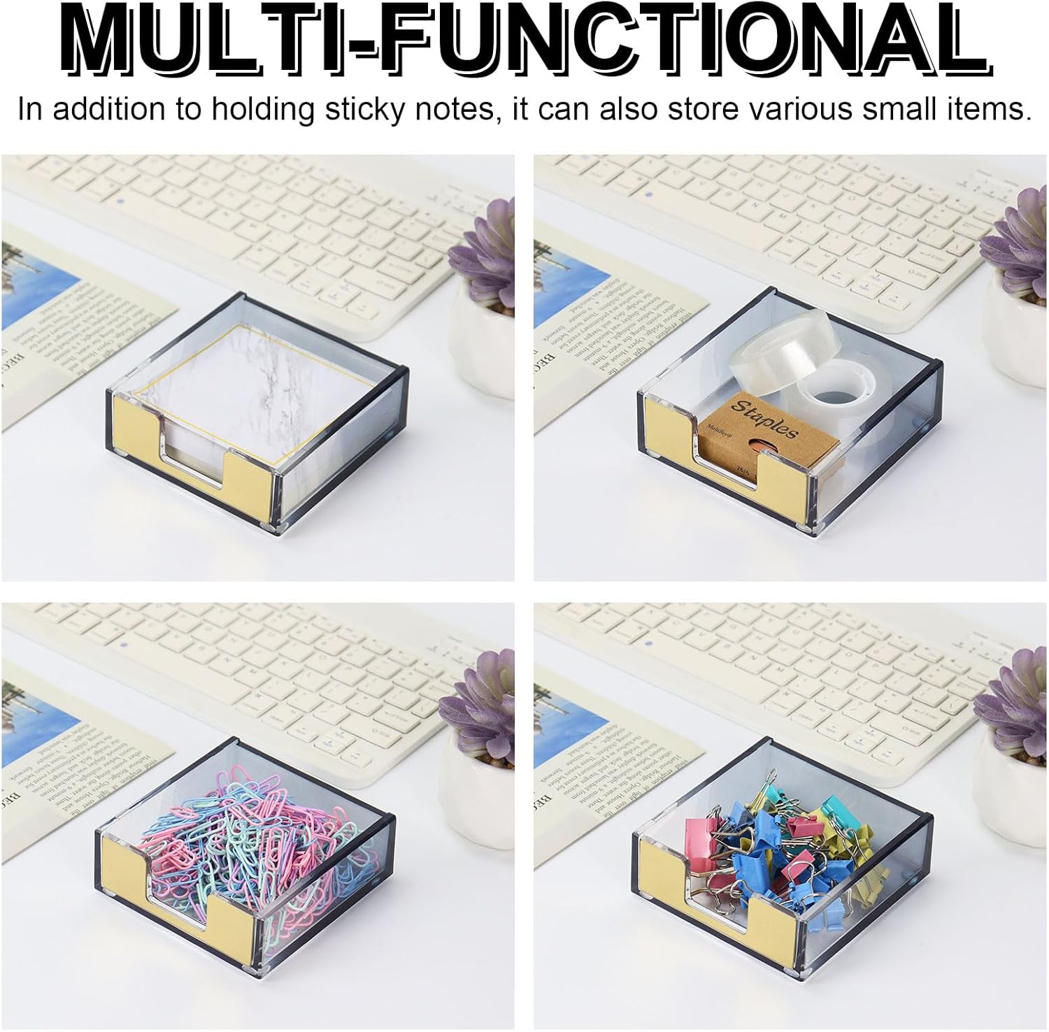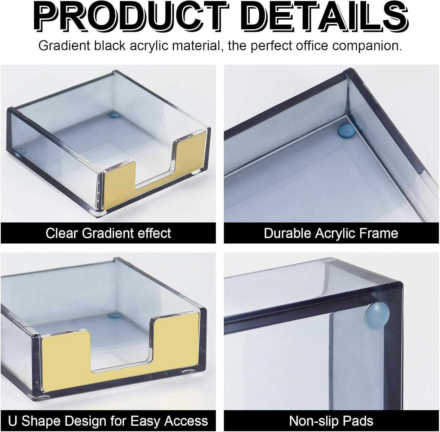- 【Sleek Gradient Design】Features a sophisticated transparent black gradient that note holder fades from dark at the rear to crystal clear at the front. The gold-accented dispenser opening adds a luxurious touch, elevating your office decor with modern style.